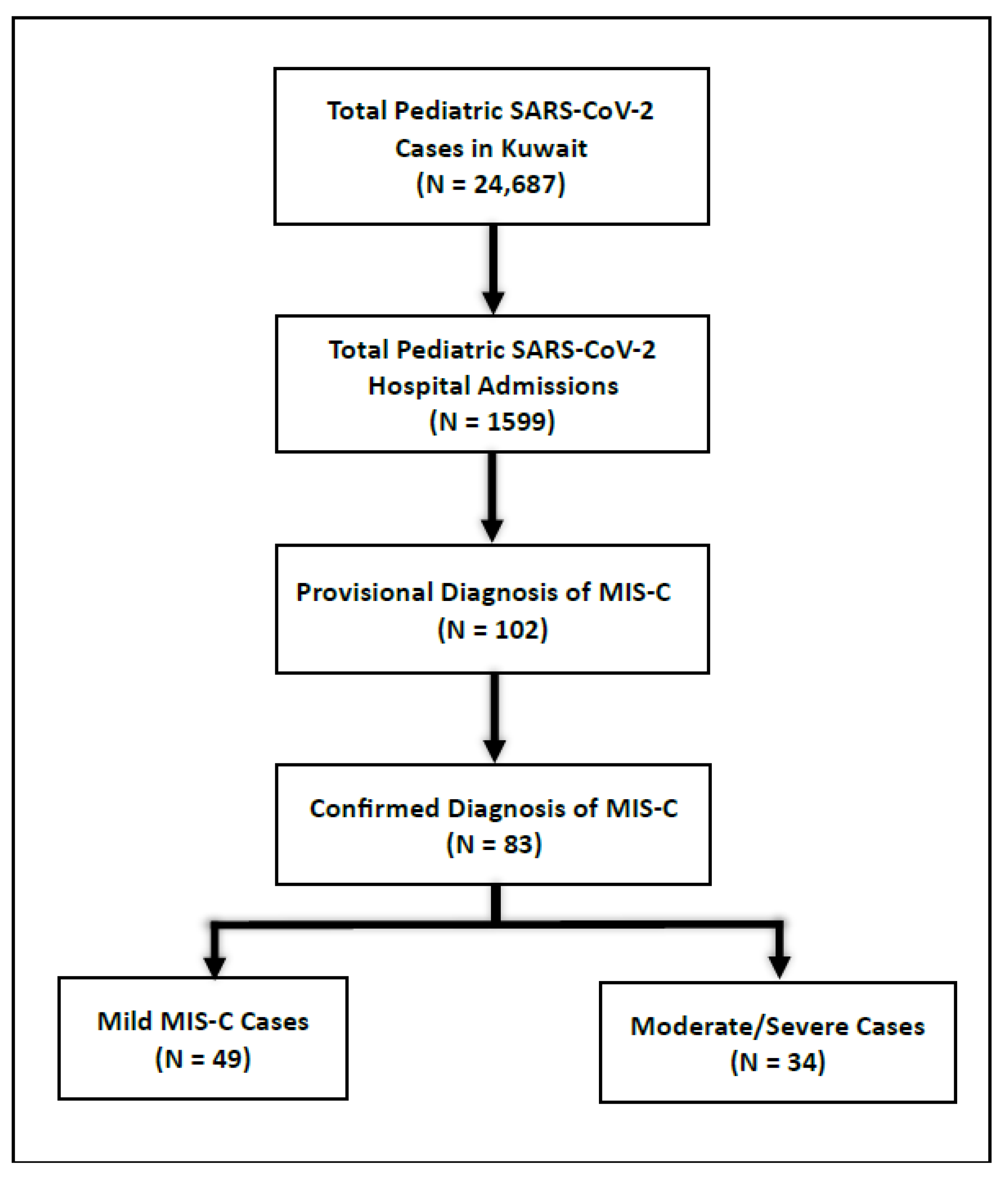 Mahomed O, Alhadlaq A, Alsaeid K, Alsaqabi A, Othman F, Al-Shammari S, Al-Yaqoub S, Al-Daihani A, Alfraij A, Alafasy K, et al. Incidence, Clinical Profile, and Cardiac Manifestations of MIS-C in Children in Kuwait. Diagnostics. 2025; 15(19):2545. https://doi.org/10.3390/diagnostics15192545