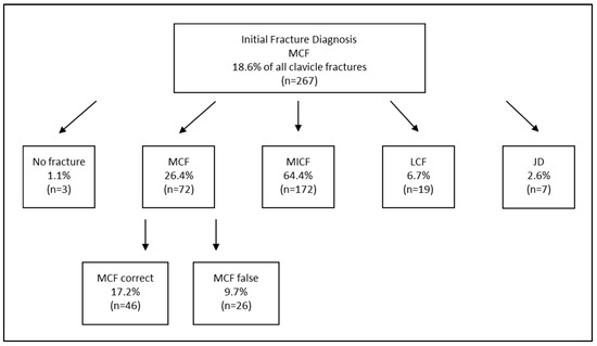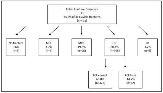 This study has several limitations. First, it primarily focused on hospitalized cases, excluding conservatively treated outpatient cases. This may have introduced bias, as it is possible that less complex, conservatively managed cases are less prone to misclassification [3,39]. Additionally, the retrospective nature of the study precludes definitive causal conclusions. Retrospective analyses rely on pre-existing documentation, which may include incomplete, inconsistent, or inaccurate entries. These factors could systematically contribute to the observed diagnostic misclassifications as the clinical reasoning behind certain classification decisions cannot be reconstructed. It remains unclear which error category is the primary source of misclassification, and whether these errors were propagated over time or occurred simultaneously. It is more than challenging to determine whether these errors arose primarily from initial diagnostic assessments, subsequent documentation, or coding processes during administrative handling. Nevertheless, we believe that a retrospective design was more appropriate for this study, as a prospective study could introduce bias by raising awareness of the diagnostic coding process among healthcare providers. While our results shed light on the prevalence and potential sources of diagnostic errors in clavicle injury classification, definitive conclusions regarding their direct impact on patient outcomes remain speculative and would require further targeted investigation. Therefore, further prospective studies are necessary to validate and expand upon our findings.