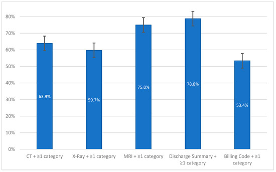 Further analysis revealed that most cases with errors in discharge summaries also had errors in other categories, whereas the amount differs significantly relating to the respective categories (Figure 6). Specifically, over 75% of cases with erroneous discharge summaries had errors in other areas, while just over half of the cases with billing errors were associated with additional coding errors (p < 0.001).