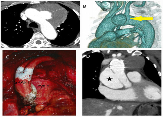 - Atkins, A.D.; Reardon, M.J.; Atkins, M.D. Endovascular Management of the Ascending Aorta: State of the Art. Methodist DeBakey Cardiovasc. J. 2023, 19, 29–37. [Google Scholar] [CrossRef]