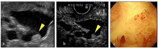 - Yamashita, Y.; Ashida, R.; Tamura, T.; Shimokawa, T.; Yamazaki, H.; Kawaji, Y.; Tamura, T.; Hatamaru, K.; Itonaga, M.; Kitano, M. Novel technique of endoscopic ultrasonography for the differential diagnosis of gallbladder lesions and intraductal papillary mucinous neoplasms: A single-center prospective study. Diagnostics 2023, 13, 2132. [Google Scholar] [CrossRef]