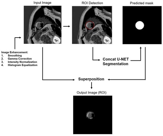 For the deep learning segmentation process, Concat-U-Net was employed, harnessing the strengths of three distinct architectures: U-Net, ResNet, and DenseNet [19]. This architecture is similar to U-Net. However, it has the advantage of using fewer parameters to reduce the risk of overfitting.
