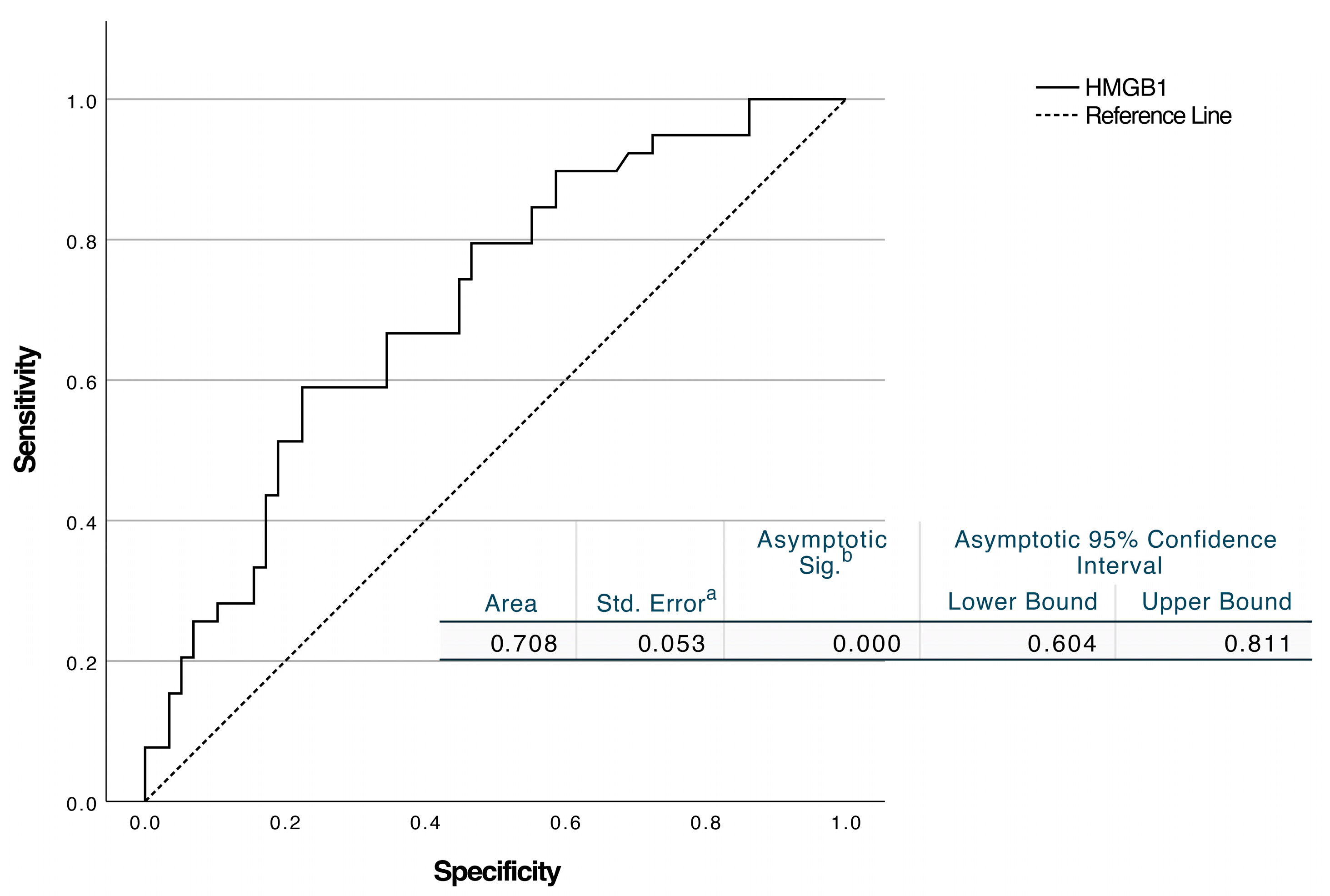 HMGB1 | 0.088 | 0.006 | 1.092 | 1.026 | 1.162 | 0.194 | <0.001 | 1.21 | 1.09 | 1.35 |