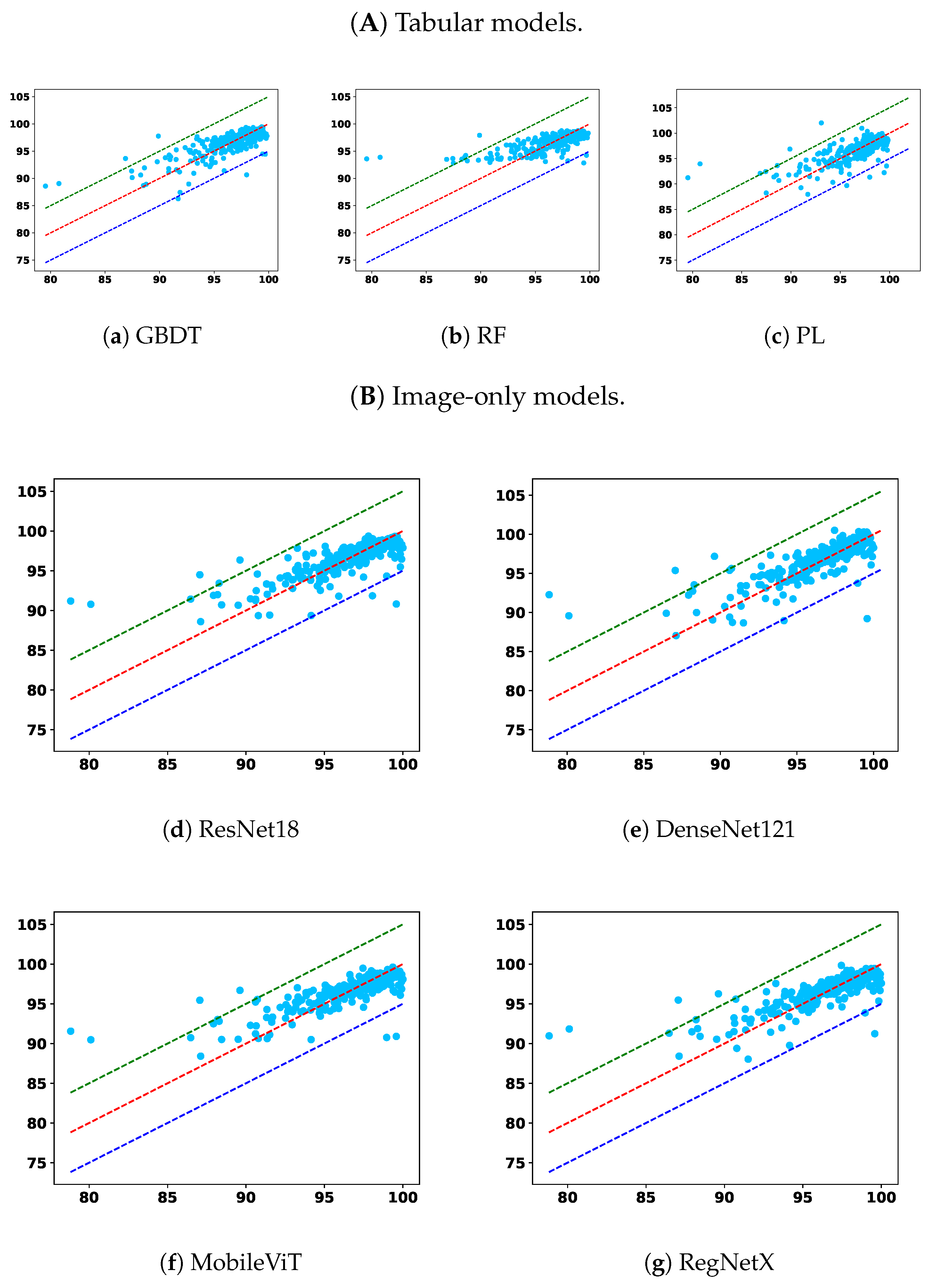 - Sun, W.; Mo, Z.; Li, Y.; Xiao, J.; Jia, L.; Huang, S.; Liao, C.; Du, J.; He, S.; Chen, L.; et al. Machine learning-based ensemble prediction model for the gamma passing rate of VMAT-SBRT plan. Phys. Med. 2024, 117, 103204. [Google Scholar] [CrossRef] [PubMed]