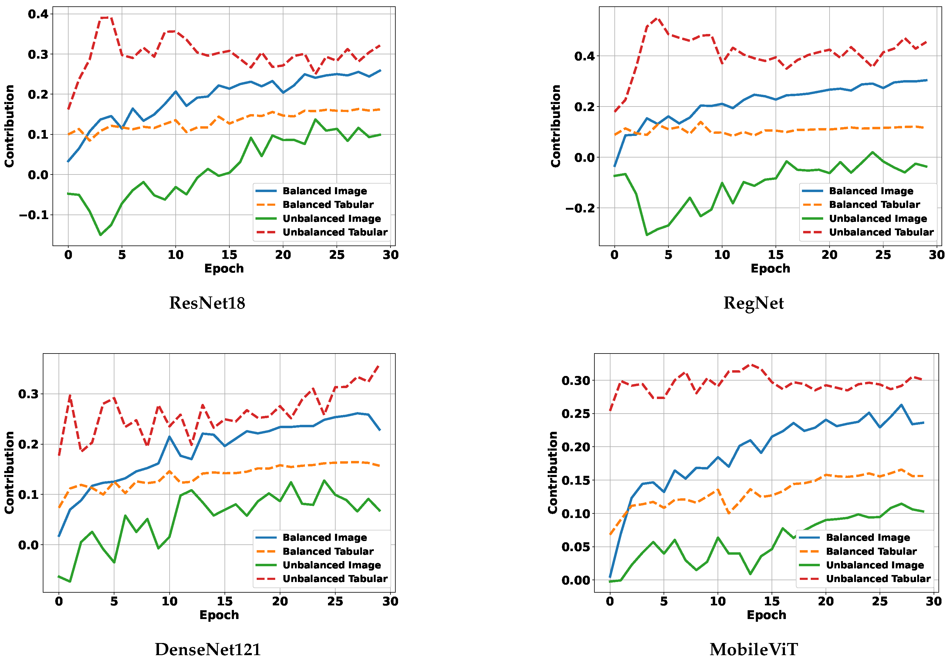 - Peng, X.; Wei, Y.; Deng, A.; Wang, D.; Hu, D. Balanced Multimodal Learning via On-the-Fly Gradient Modulation. In Proceedings of the IEEE/CVF Conference on Computer Vision and Pattern Recognition (CVPR), New Orleans, LA, USA, 21–24 June 2022; pp. 8238–8247. [Google Scholar]