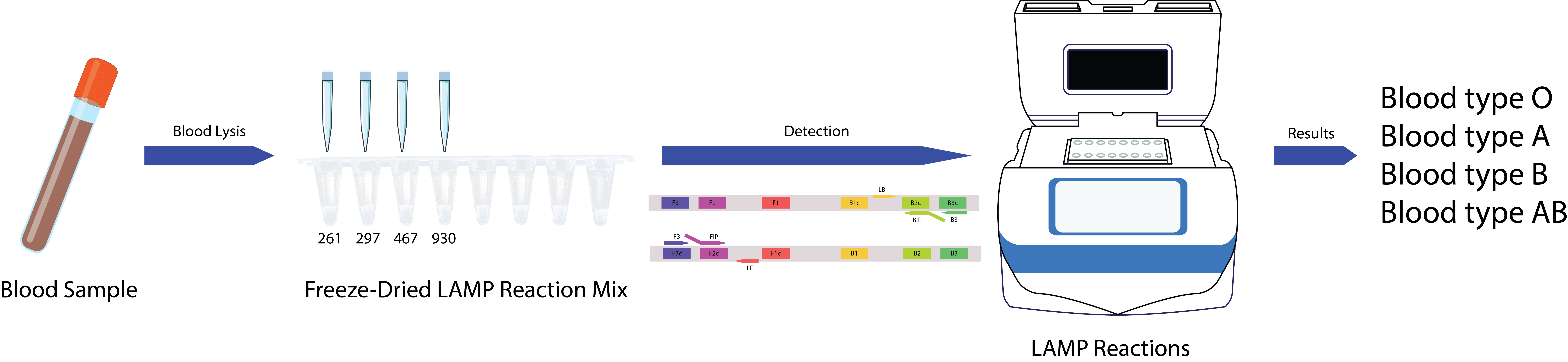ABO blood types. For the proof of concept of our LAMP-based