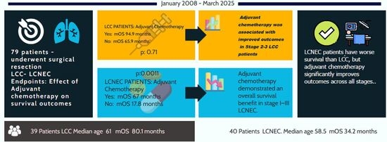 3.4. Survival Analysis and Treatment Effect—LCNEC Patients