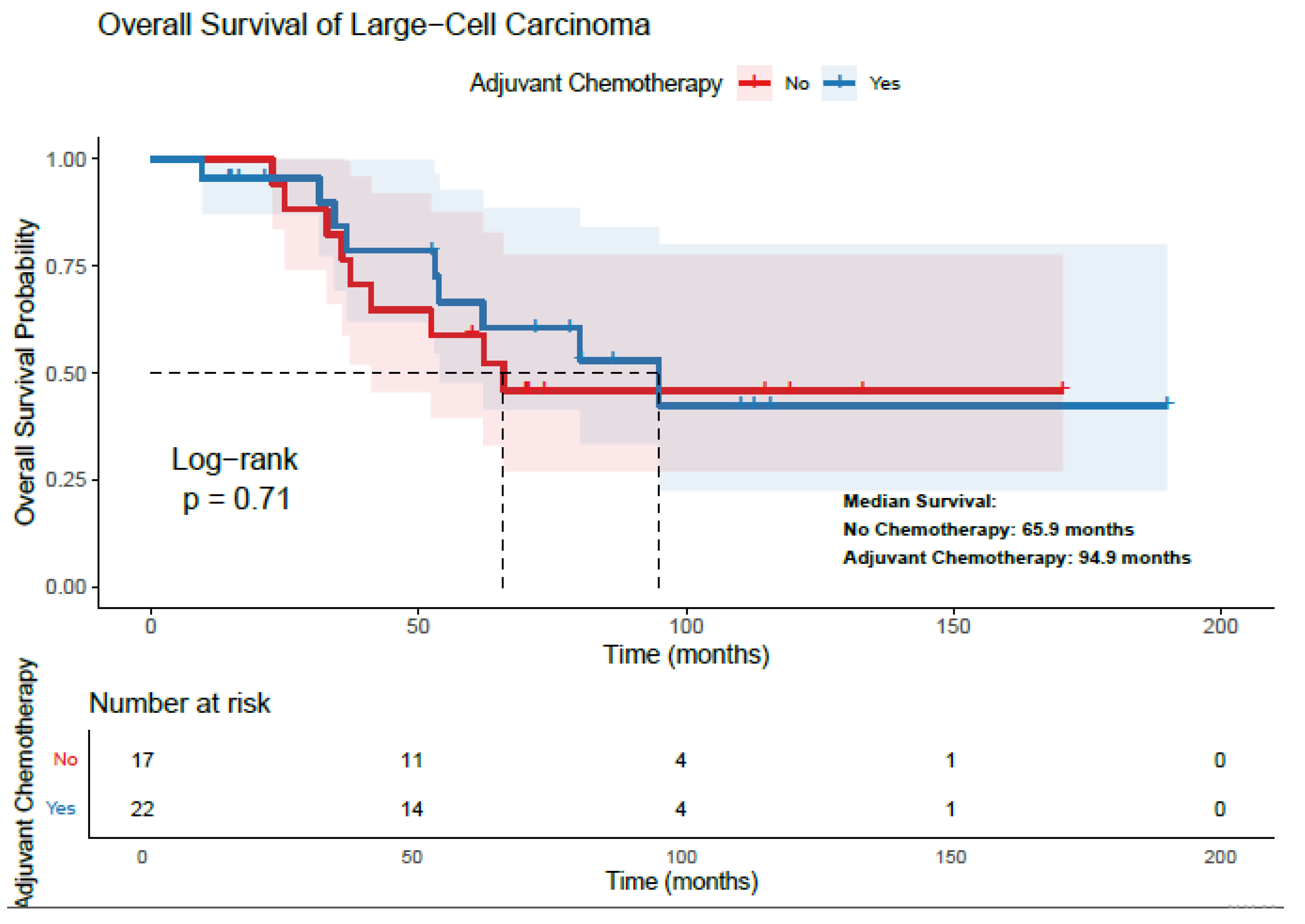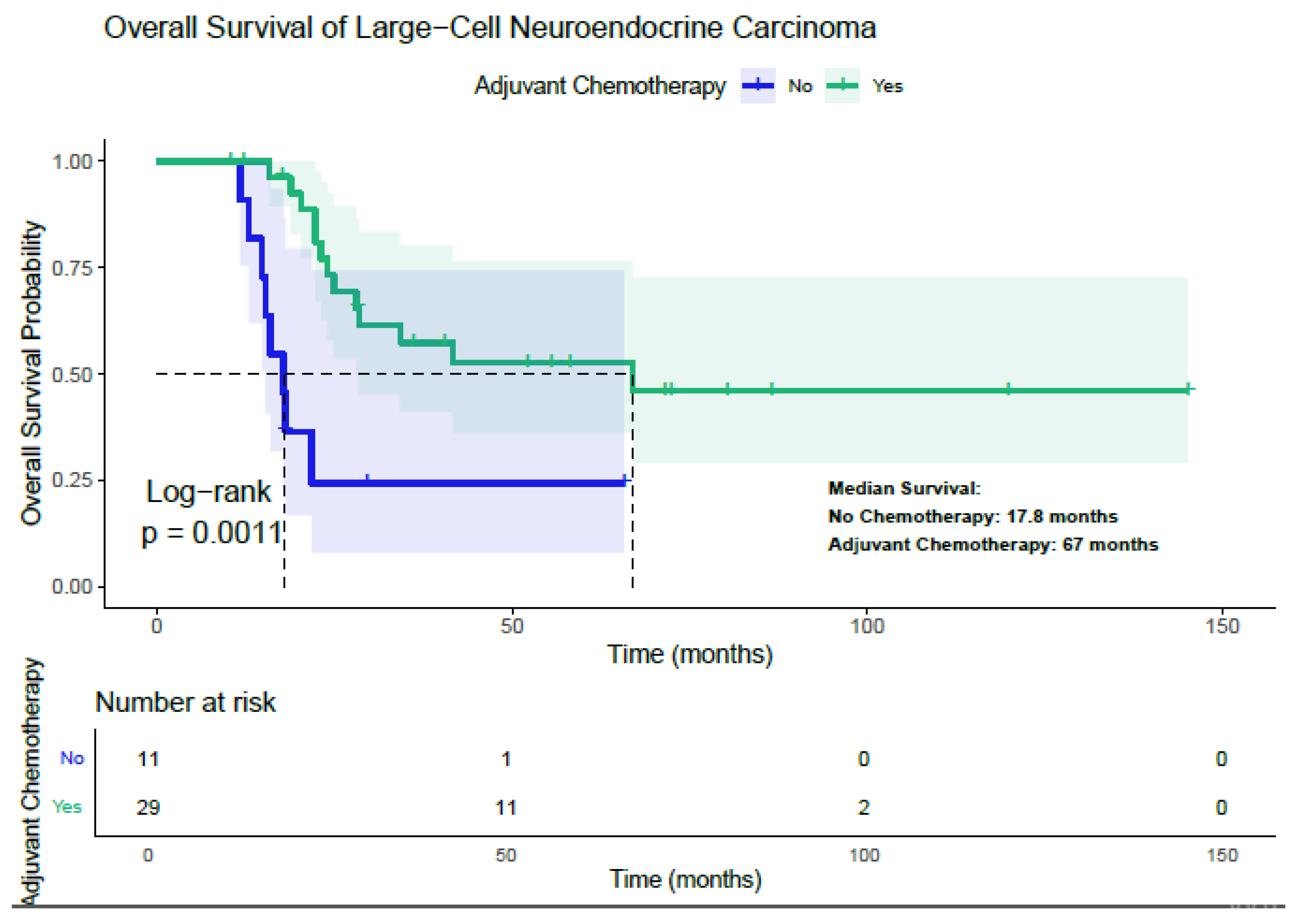 Adjuvant Chemotherapy | Yes | 67.0 | 0.0011 | 0.030 (HR: 0.264) | 61.9 | 0.001 | 0.02 (HR: 0.211) |