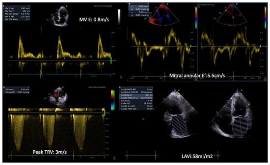 - Laws, J.L.; Maya, T.R.; Gupta, D.K. Stress Echocardiography for Assessment of Diastolic Function. Curr. Cardiol. Rep. 2024, 26, 1461–1469. [Google Scholar] [CrossRef]