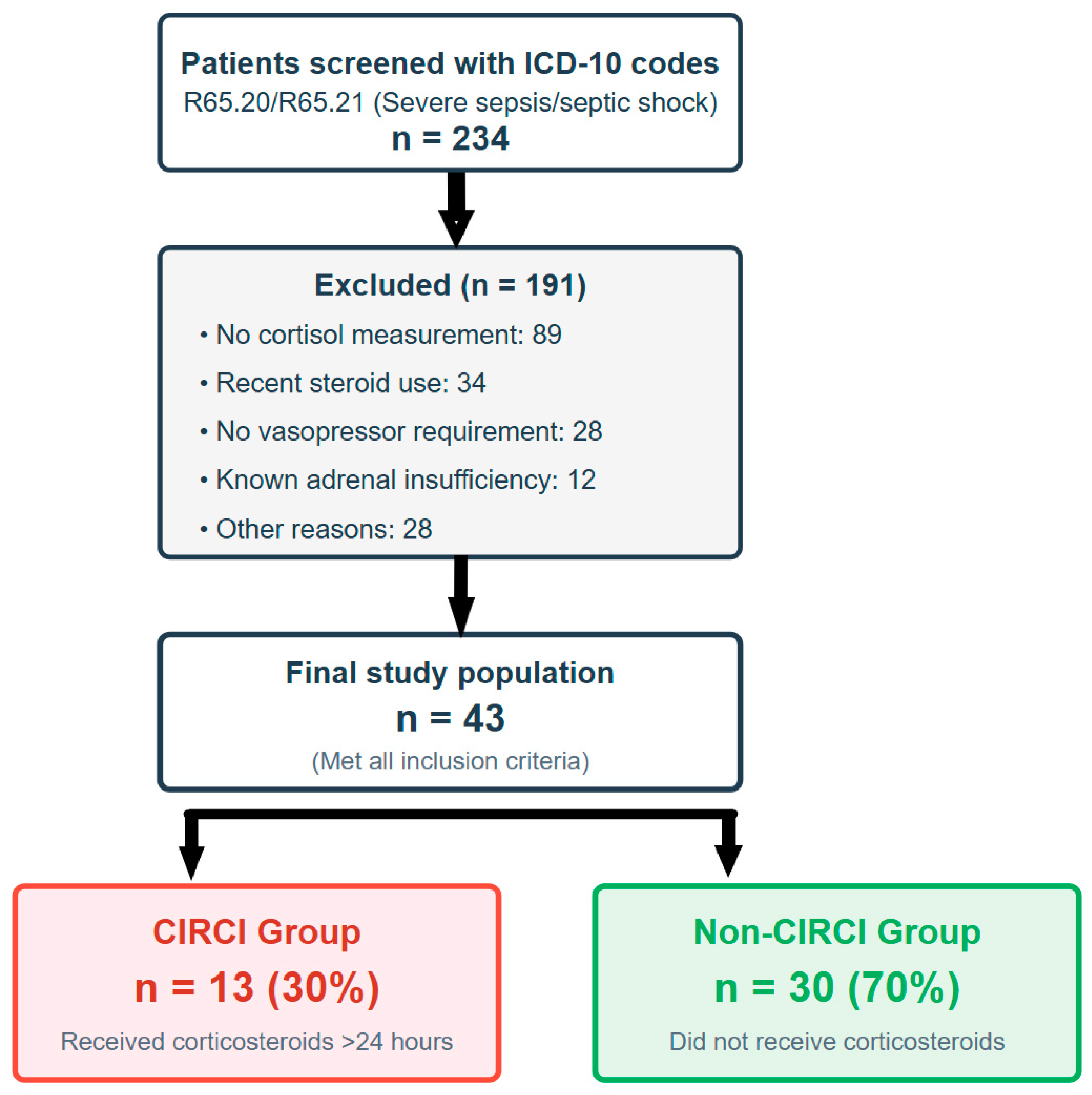 - Fredrick, F.C.; Meda, A.K.; Singh, B.; Jain, R. Critical illness-related corticosteroid insufficiency: Latest pathophysiology and management guidelines. Acute Crit. Care 2024, 39, 331–342. [Google Scholar] [CrossRef] [PubMed]