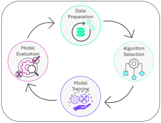 Once a diagnostic problem has been identified, and suitable clinical and analytical data have been acquired, the development of a diagnostic model involves four main steps: data preparation, algorithm selection (including hypothesis establishment), model training, and model evaluation, as shown in Figure 2. Depending on the project in question, model deployment can also be the last step in this cycle. The details involved in each of these steps will be discussed in the following sections.