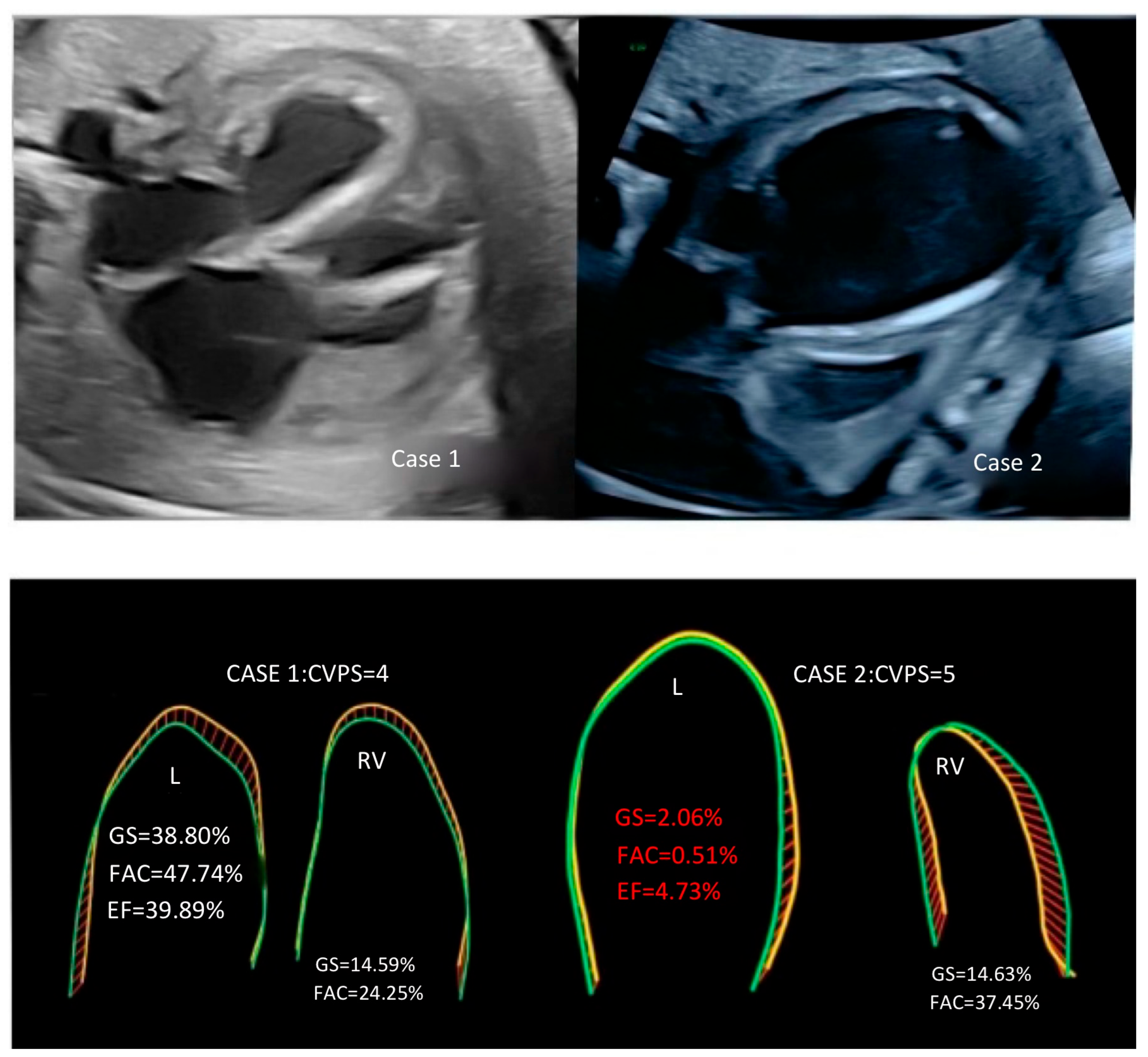 - DeVore, G.R.; Klas, B.; Satou, G.; Sklansky, M. Quantitative evaluation of fetal right and left ventricular fractional area change using speckle-tracking technology. Ultrasound Obstet. Gynecol. 2019, 53, 219–228. [Google Scholar] [CrossRef] [PubMed]
