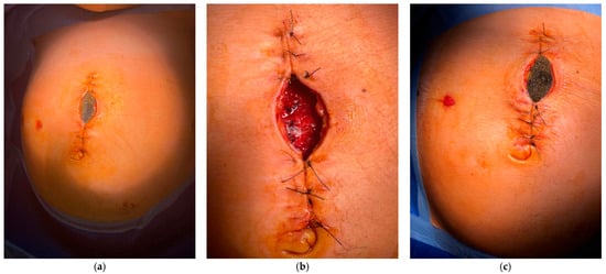 - Zapletal, J.; Sehnal, B.; Dvorak, R.; Drienko, M.; Vlk, R.; Halaska, M.J.; Rob, L. Abdominal wound dehiscence after appendectomy during pregnancy treated by negative pressure wound therapy with subsequent vaginal delivery: A case report and literature review. Int. J. Gynecol. Obstet. 2025, 170, 150–156. [Google Scholar] [CrossRef]