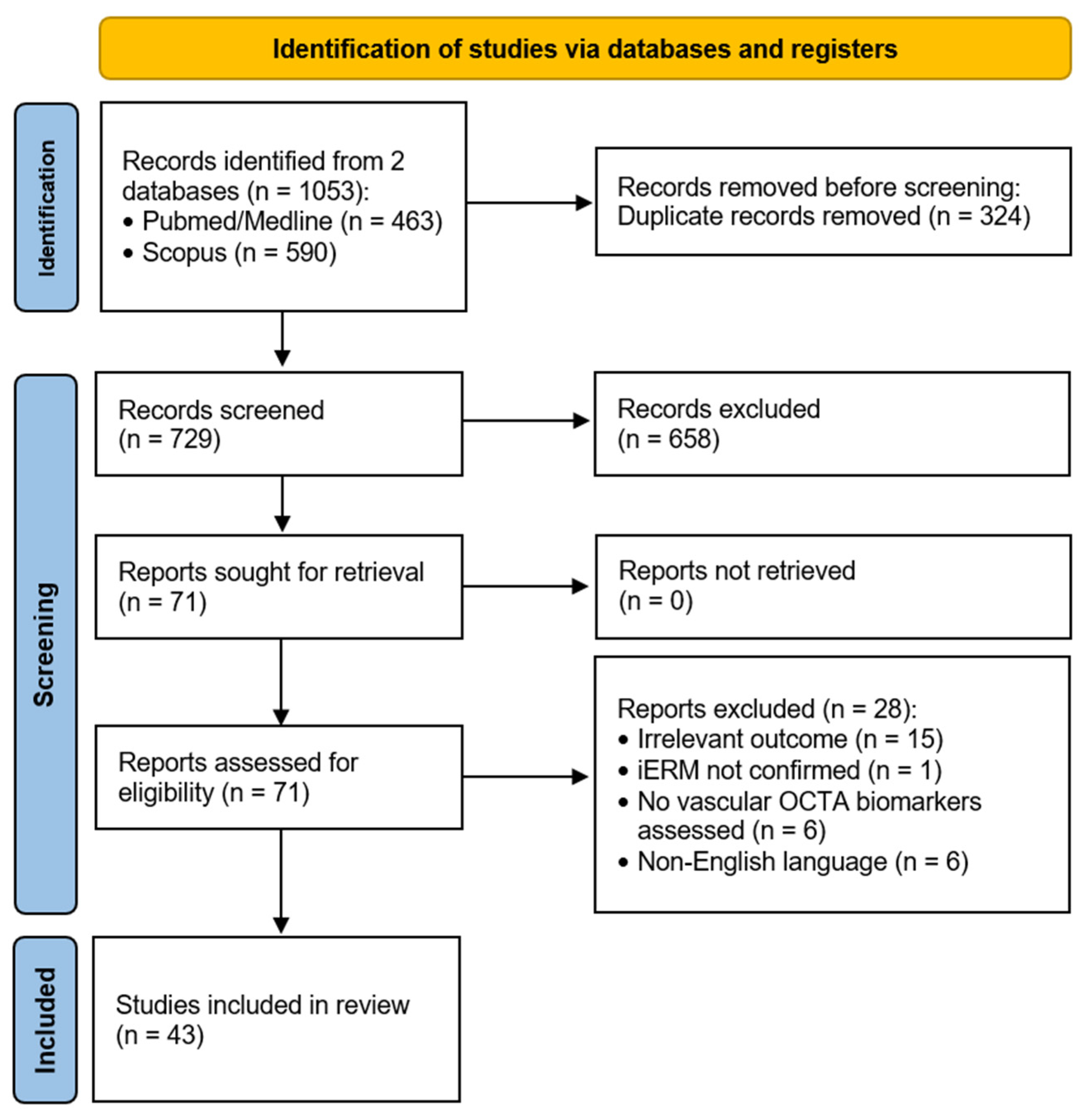 APA StyleSere, A. M., Muntean, G. A., Cristea, A. P., & Nicoară, S. D. (2025). OCTA Biomarkers Underlying Structure–Function Correlations in Idiopathic Epiretinal Membrane: A Systematic Review. Diagnostics, 15(20), 2596. https://doi.org/10.3390/diagnostics15202596