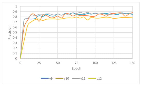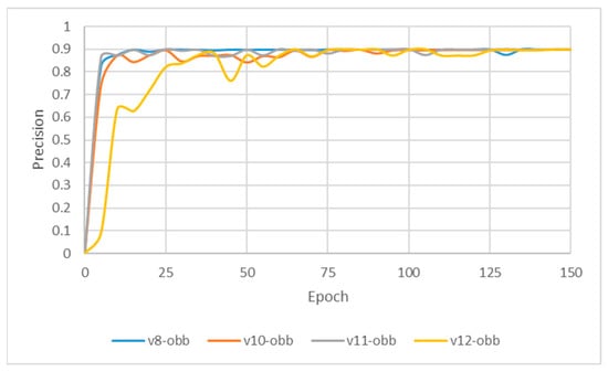 This subsection evaluates the effectiveness of image enhancement techniques applied to the YOLO-OBB model for detecting the two adjacent teeth. In this study, a composite image processing strategy (HE: BF = 3:7) was integrated to assess the training performance of the YOLO-OBB framework, with the workflow illustrated in Figure 11 and the results summarized in Table 8. The Accuracy of YOLOv8n-OBB, YOLOv10n-OBB, YOLOv11n-OBB, and YOLOv12n-OBB remained consistent within the range of 89.5–89.9%. Precision and Recall were also close to 90%, indicating stable performance regarding correct prediction and comprehensive coverage. For the mAP50 metric, all models achieved a value of 89.50%, reflecting highly consistent detection capability across versions. However, more pronounced differences emerged in the mAP50–95 evaluation. YOLOv8n-OBB and YOLOv11n-OBB achieved higher scores of 78.75% and 77.48%, respectively, outperforming YOLOv10n-OBB (71.73%) and YOLOv12n-OBB (70.14%). Although the four versions demonstrated comparable Accuracy, Precision, and Recall, the variation in mAP50–95 highlights performance discrepancies under stricter IoU thresholds, suggesting that further optimization is needed to enhance robustness in challenging detection scenarios. Moreover, the training time per epoch varied across the YOLO-OBB models, ranging from 21:03 ms (YOLOv8n-obb) to 26:54 ms (YOLOv12n-obb). YOLOv8n-obb and YOLOv10n-obb demonstrated the shortest training times, while YOLOv12n-obb required the longest.