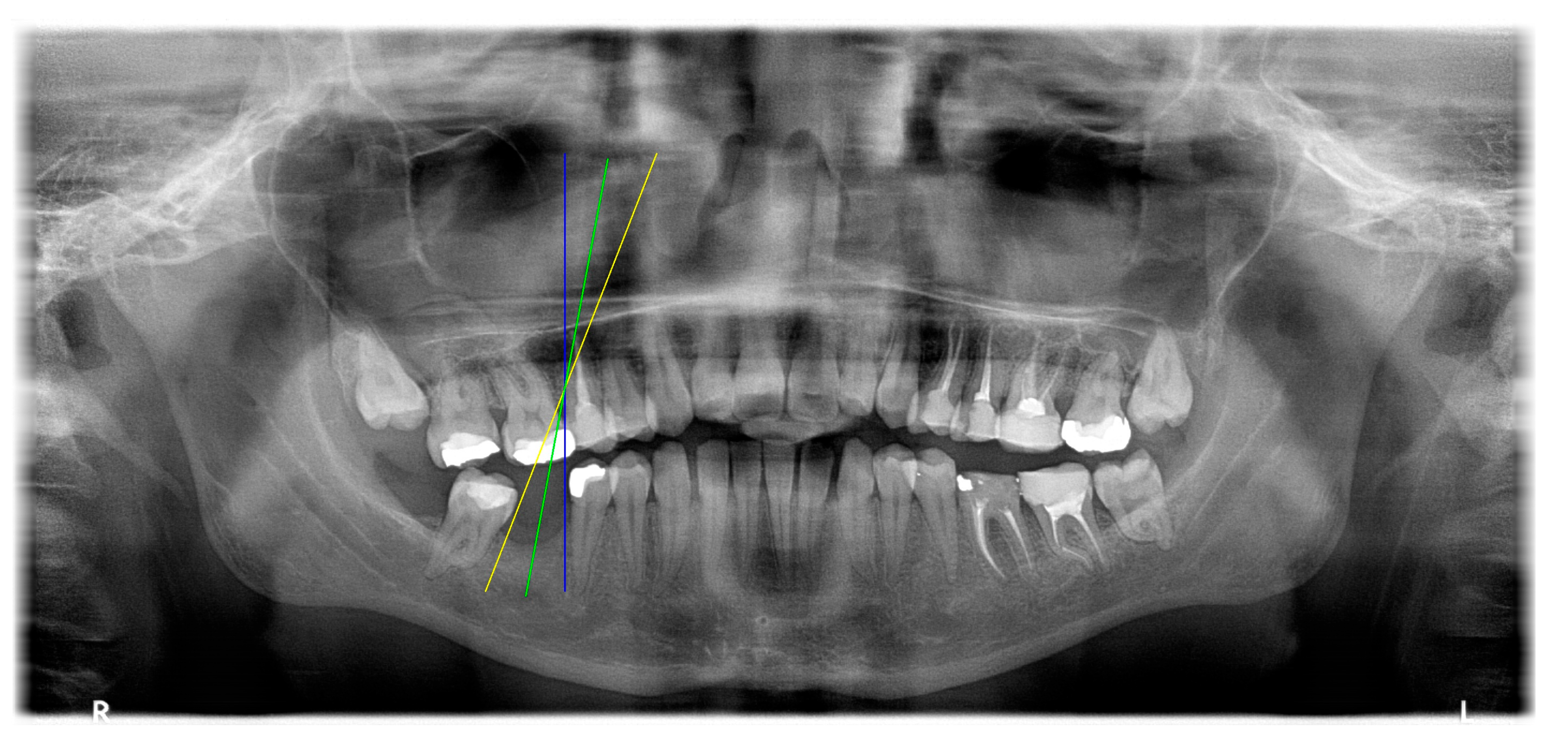 - Walker, C.; Thomson, D.; McKenna, G. Case study: Limitations of panoramic radiography in the anterior mandible. Dent. Update 2009, 36, 620–623. [Google Scholar] [CrossRef]