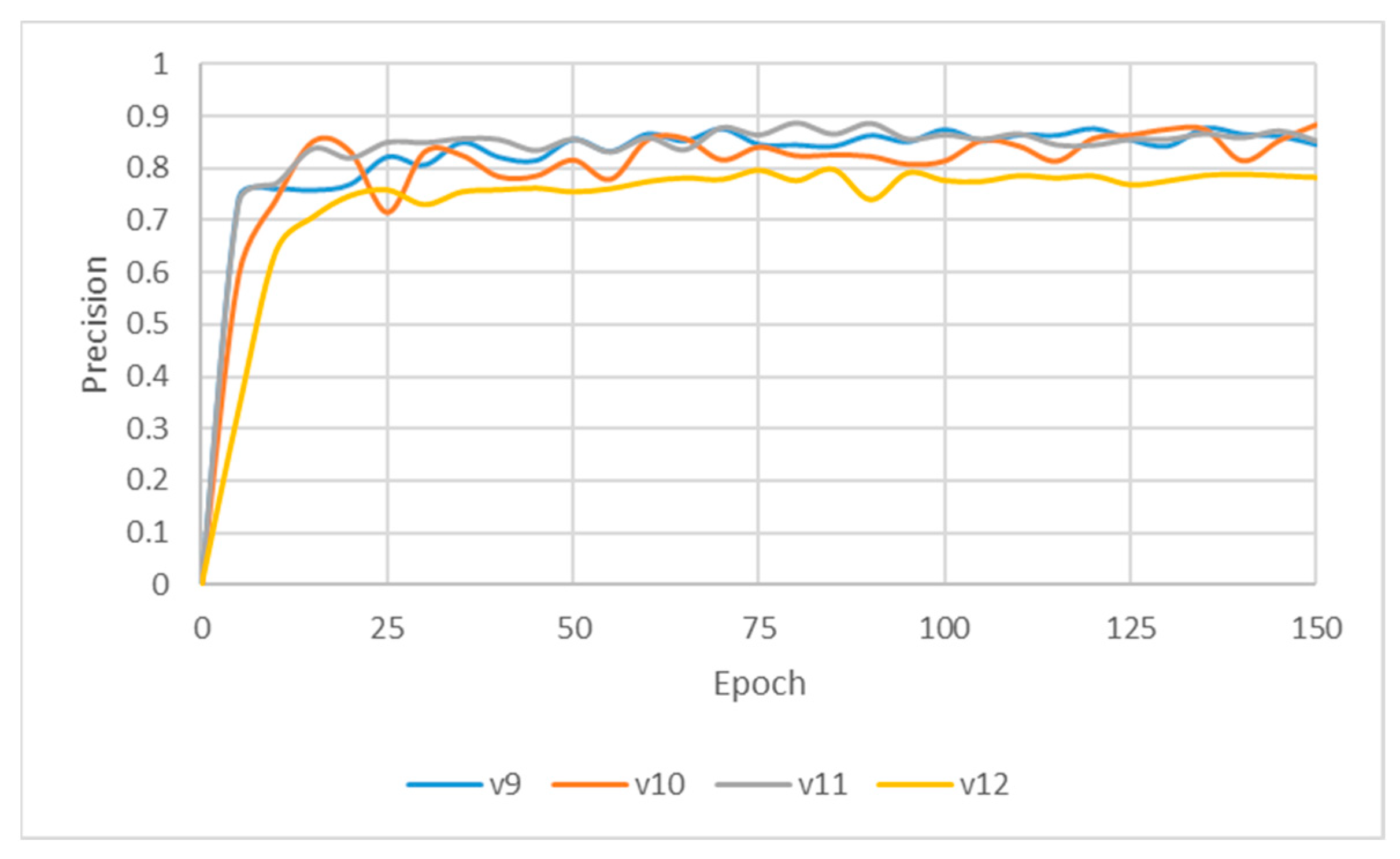 - YOLOv12 adopts an attention-centric design with the A2 regional attention module for dynamic global–local feature capture; incorporates the R-ELAN architecture for enhanced feature aggregation and gradient stability; and integrates Flash Attention and adaptive MLP ratio optimization, achieving superior inference speed and detection accuracy over previous versions [35].