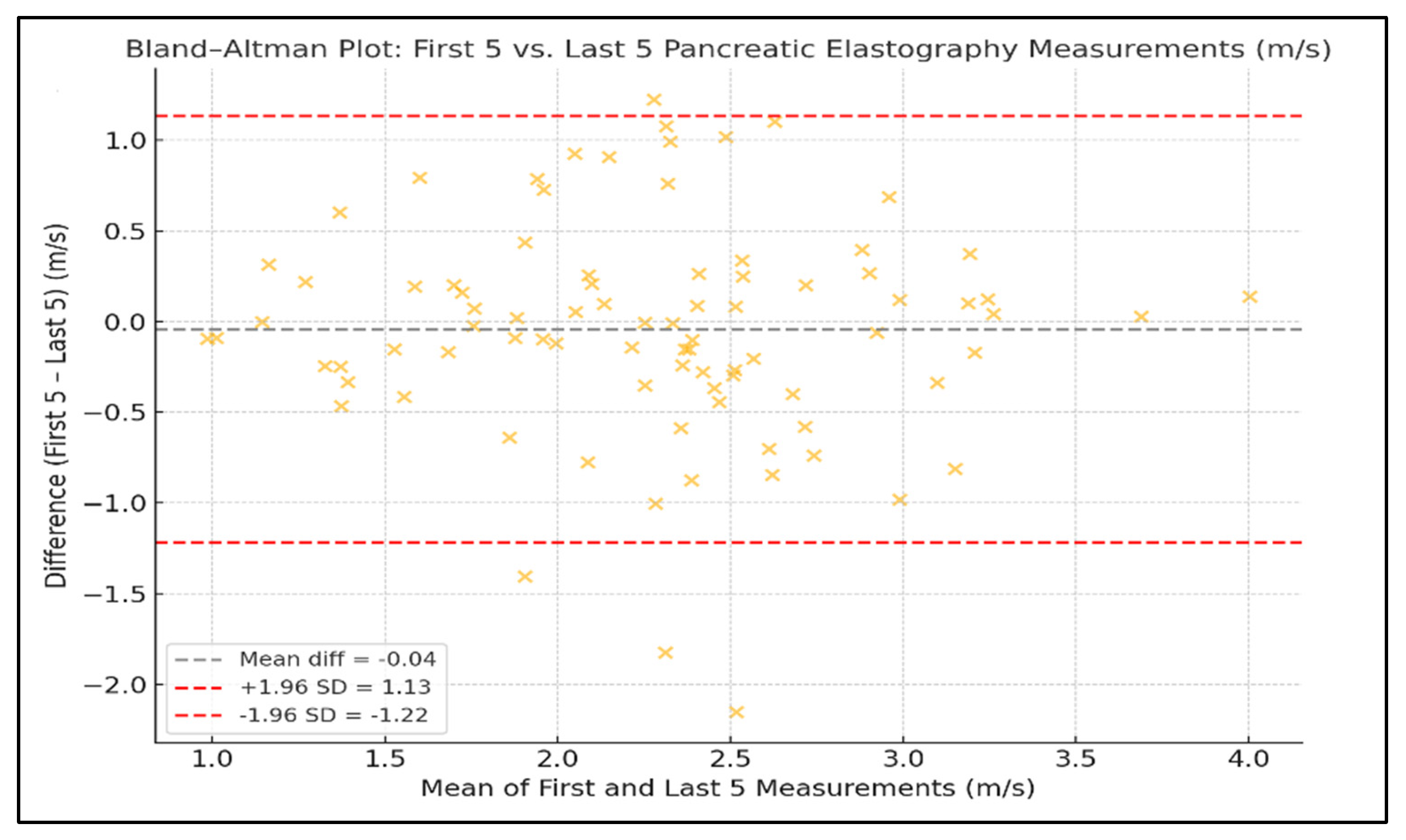 APA StyleMiutescu, B., Bende, R., Bende, F., Burdan, A., Gadour, E., Ghiuchici, A. M., Alomar, M., Burciu, C., AlQahtani, M. S., Sirli, R., Popescu, A., & Ratiu, I. (2025). Assessment of Intra-Individual Variability and Reproducibility in Pancreatic EUS-Guided Elastography . Diagnostics, 15(20), 2601. https://doi.org/10.3390/diagnostics15202601