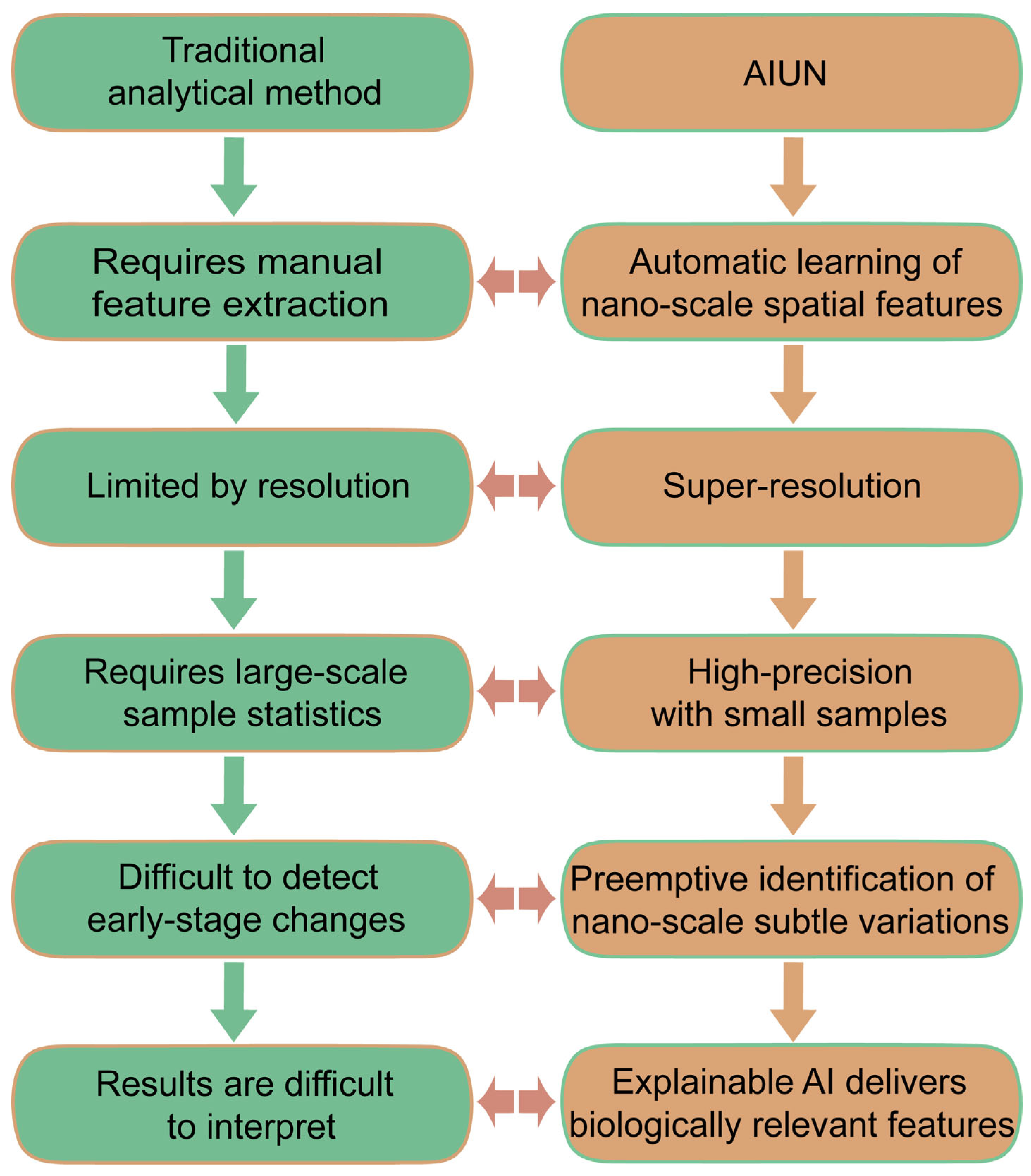 Figure 4). This approach positions AINU as a potential tool for ultra-early diagnosis, operating in a timeframe prior to the accumulation of sufficient pathogen material for conventional detection or the onset of a detectable immune response. Therefore, it complements rather than replaces established methods. While AINU represents a highly specialized and emerging niche, its inclusion here underscores the diversity of AI applications moving beyond traditional paradigms toward ultra-early, morphology-based cellular diagnostics, potentially offering a complementary approach to established methods in future diagnostic workflows [
