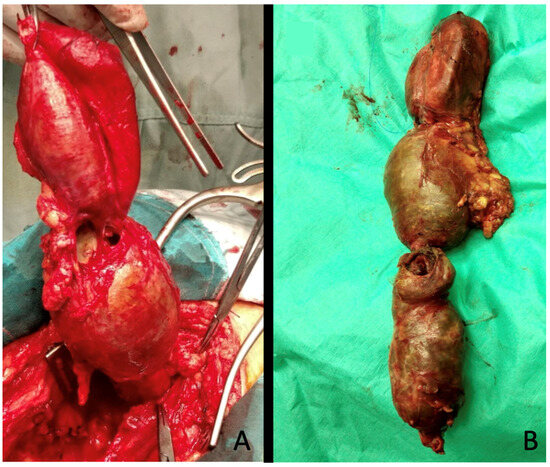 Clinical examination, Doppler ultrasound (DUS), and CTA were performed preoperatively to assess the aneurysm’s extent and size, the anatomical location of the aneurysm, and the patency of the runoff vessels. This comprehensive evaluation guided the selection of the most appropriate strategy and identified the most suitable distal target for bypass grafting.