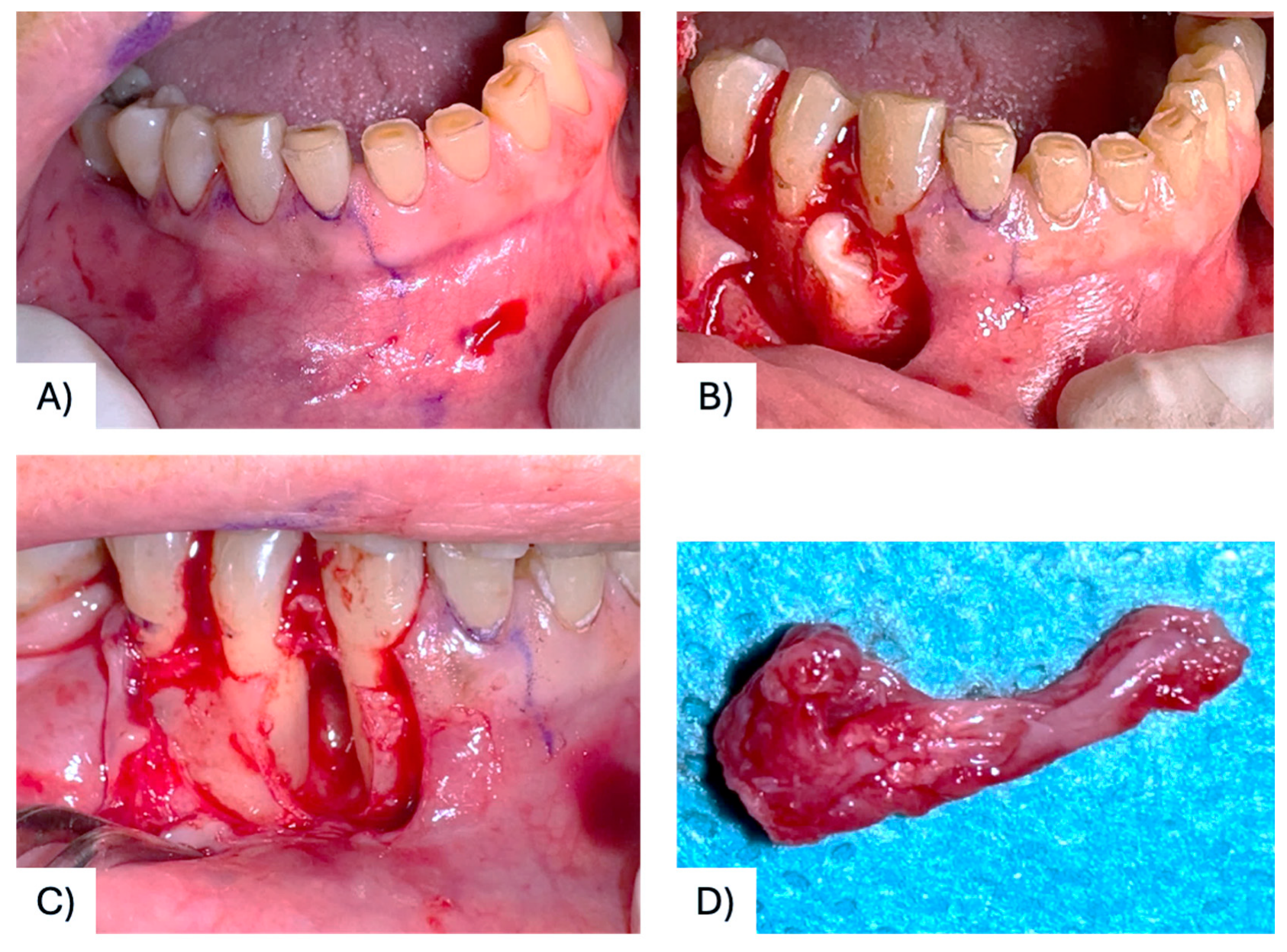 - Brooks, J.K.; Sultan, A.S.; Rabkin, M.P.; Sands, J.M.; Everett, D.E.; Price, J.B.; Basile, J.R. Recurrent peripheral odontogenic keratocyst: Review of the literature and presentation of a novel case initially masquerading as an atypical infected lateral periodontal cyst. J Stomatol. Oral Maxillofac. Surg. 2024, 125, 101540. [Google Scholar] [CrossRef] [PubMed]