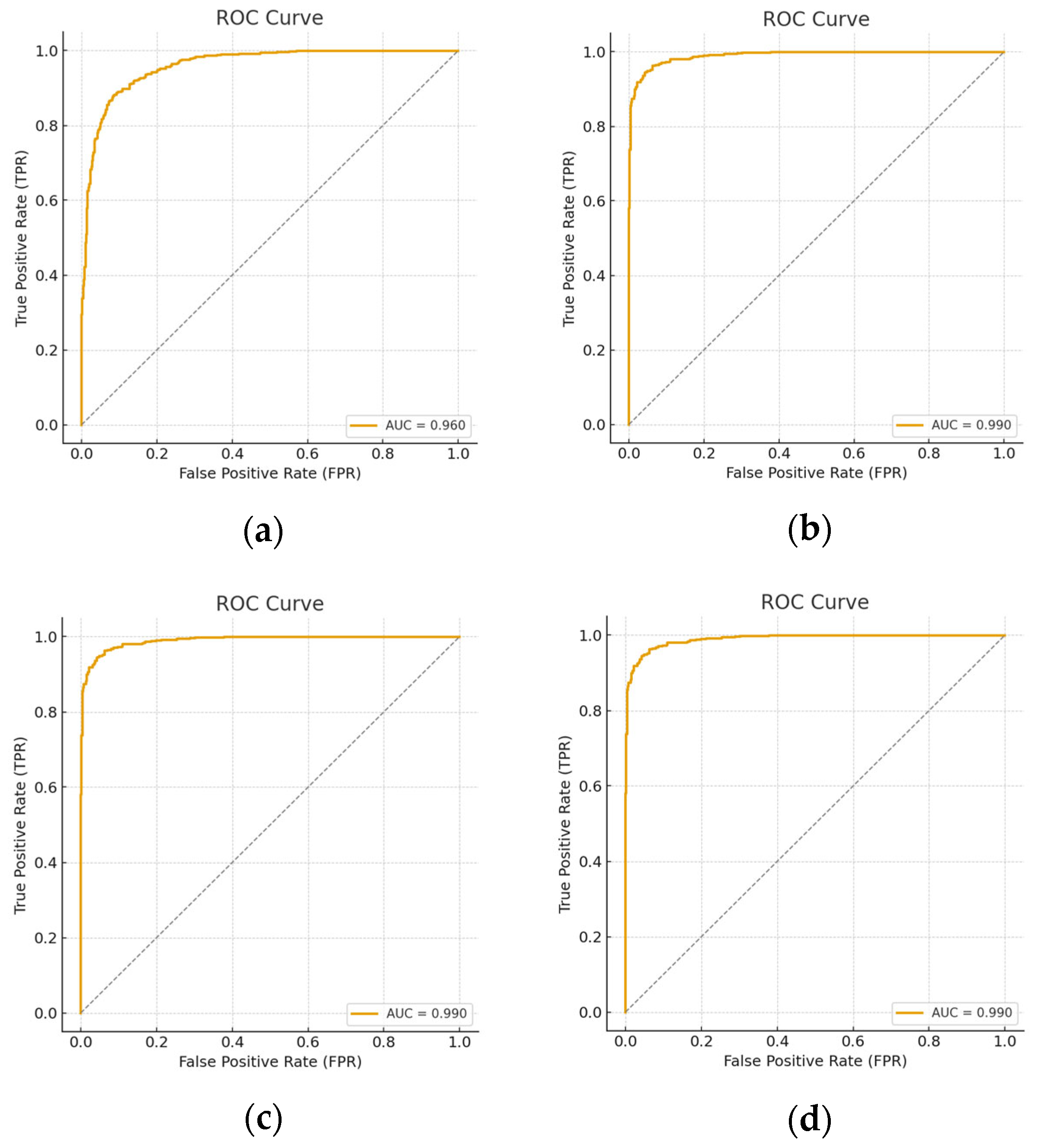 All downstream models were trained using a batch size of 32, the Adam optimizer, and 20 epochs, with binary cross-entropy used as the loss function. The parameter sizes vary depending on the pretext model used. For the Gaussian noise and rotation-based models, the downstream network contains a total of 35,969,925 parameters, of which 35,576,901 are trainable and the rest are non-trainable. In contrast, the generative pretext-based model has a significantly larger architecture, with 306,881 total parameters, including 35,576,901 trainable and remaining are non-trainable parameters.