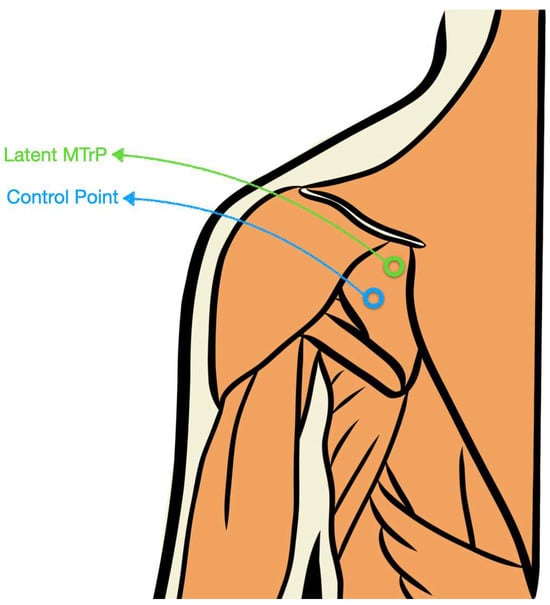 Because both marks were identical and the ultrasound operator was not told which was the MTrP versus control (nor the rationale for the locations), effective blinding was achieved. A schematic representation of this procedure is illustrated in Figure 1.