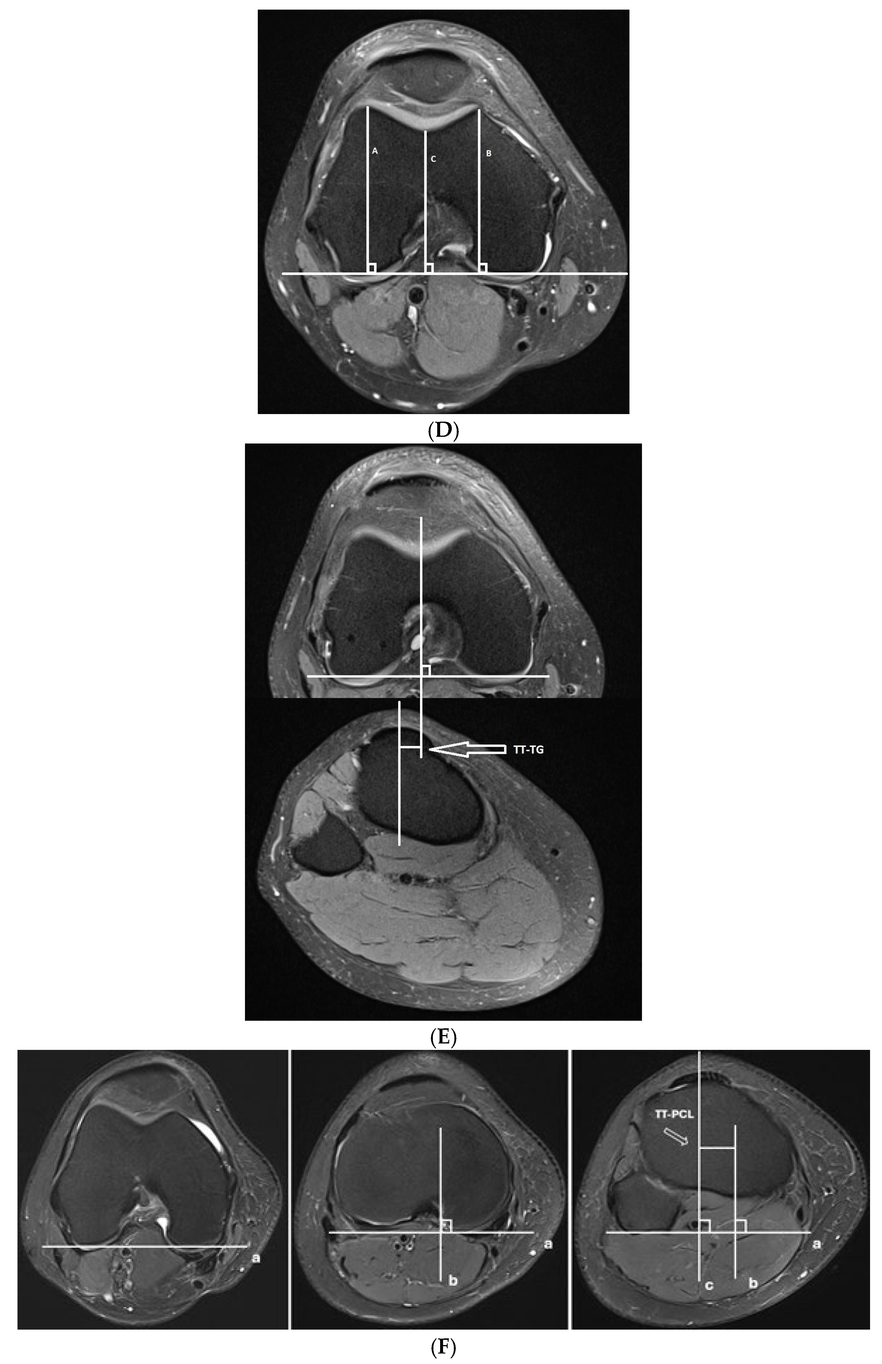 - Brady, J.M.; Rosencrans, A.S.; Shubin Stein, B.E. Use of TT-PCL versus TT-TG. Curr. Rev. Musculoskelet. Med. 2018, 11, 261–265. [Google Scholar] [CrossRef] [PubMed]