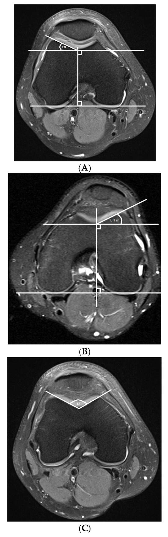 - Lateral trochlear inclination (LTI) and a modified LTI measurement, measured at the level of the trochlear groove and named LTI modified [9,16]