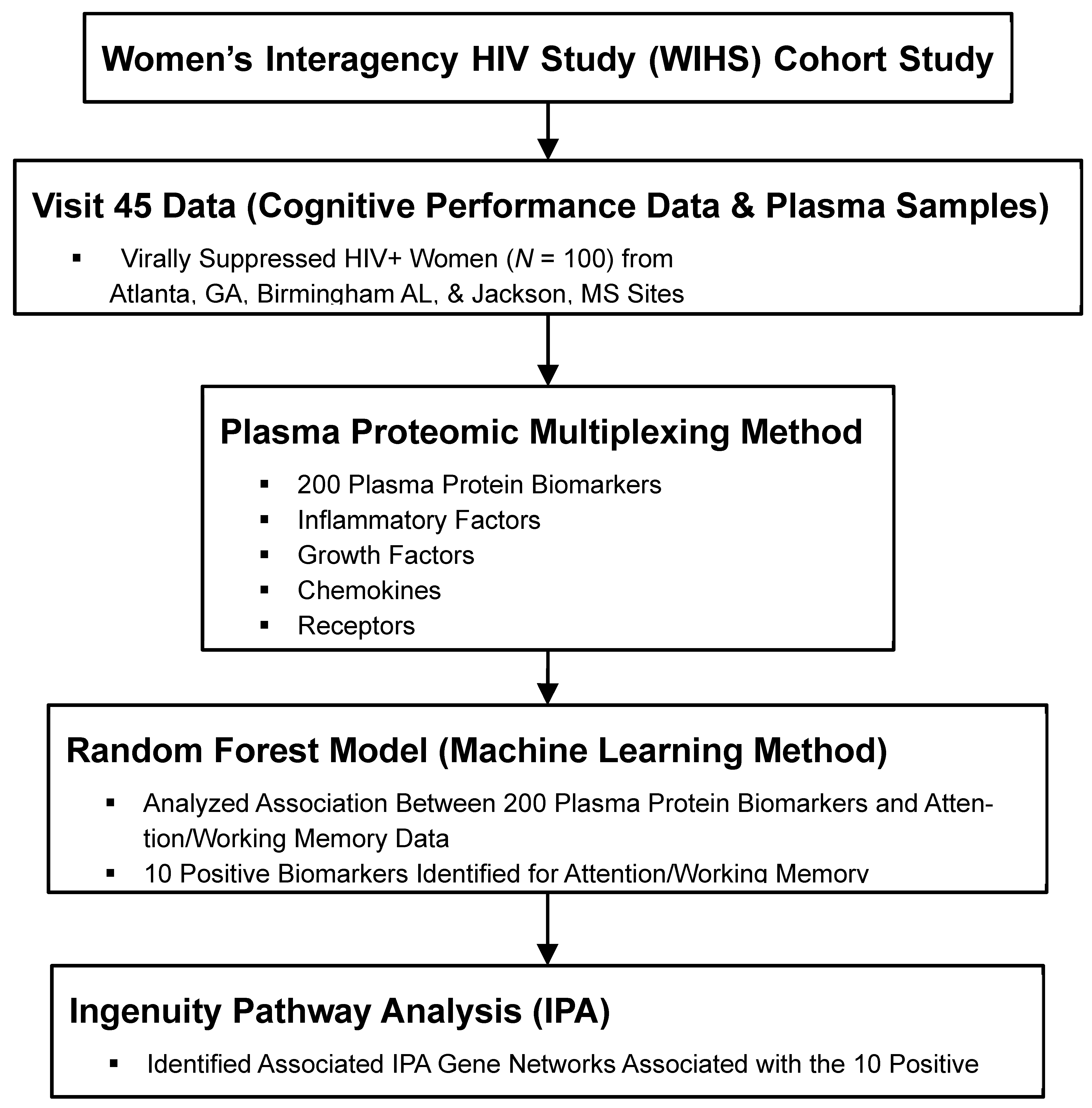 Li W, Rubin LH, Xu Y, Wang Y, Dastgheyb R, Ptacek T, Wang G, Kempf M-C, Dionne JA, Konkle-Parker D, et al. Multiplexing Proteomic and Ingenuity Pathway Analysis of Attention/Working Memory in Virally Suppressed Women with HIV: A Feasibility Study. Diagnostics. 2025; 15(20):2649. https://doi.org/10.3390/diagnostics15202649