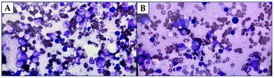 (A). Touch imprint on trephine biopsy (total magnitude: 400). (B). Touch imprint on trephine biopsy (total magnitude: 400).