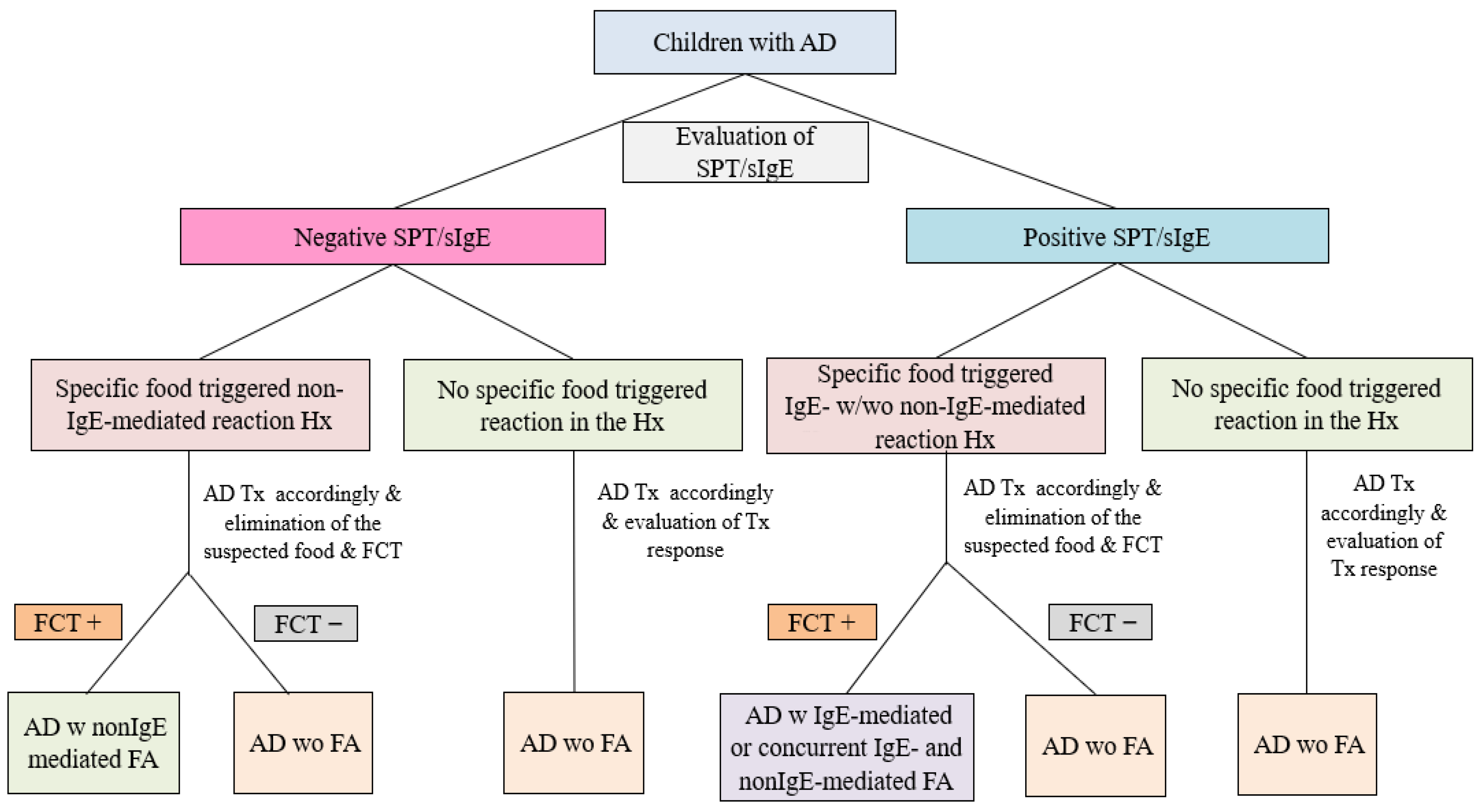 - Pepper, A.N. Atopic dermatitis and food allergy: To test or not to test. J. Food Allergy 2023, 5, 25–28. [Google Scholar] [CrossRef] [PubMed]