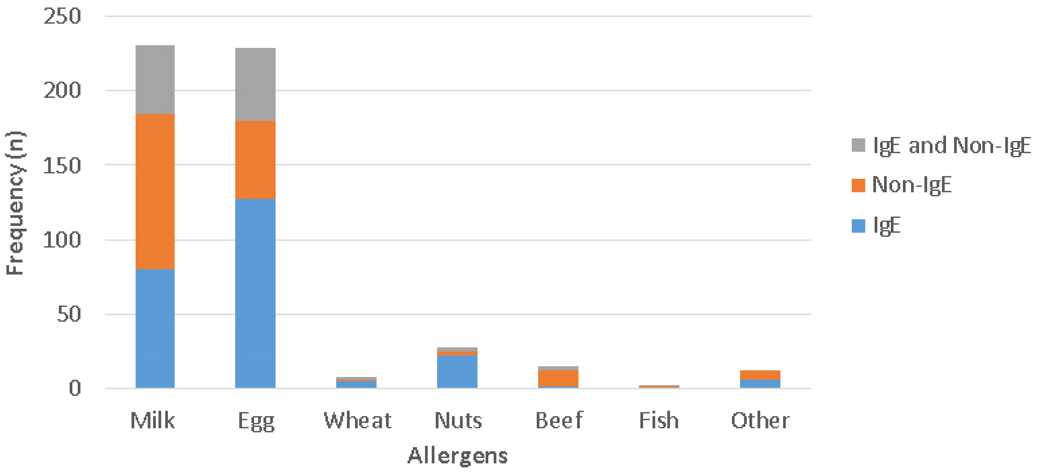- Uncuoğlu, A.; Aydoğan, M.; Şimşek, I.E.; Çöğürlü, M.T.; Uçak, K.; Acar, H.C. A Prospective Assessment of Clinical Characteristics and Responses to Dietary Elimination in Food Protein-Induced Allergic Proctocolitis. J. Allergy Clin. Immunol. Pract. 2022, 10, 206–214. [Google Scholar] [CrossRef]