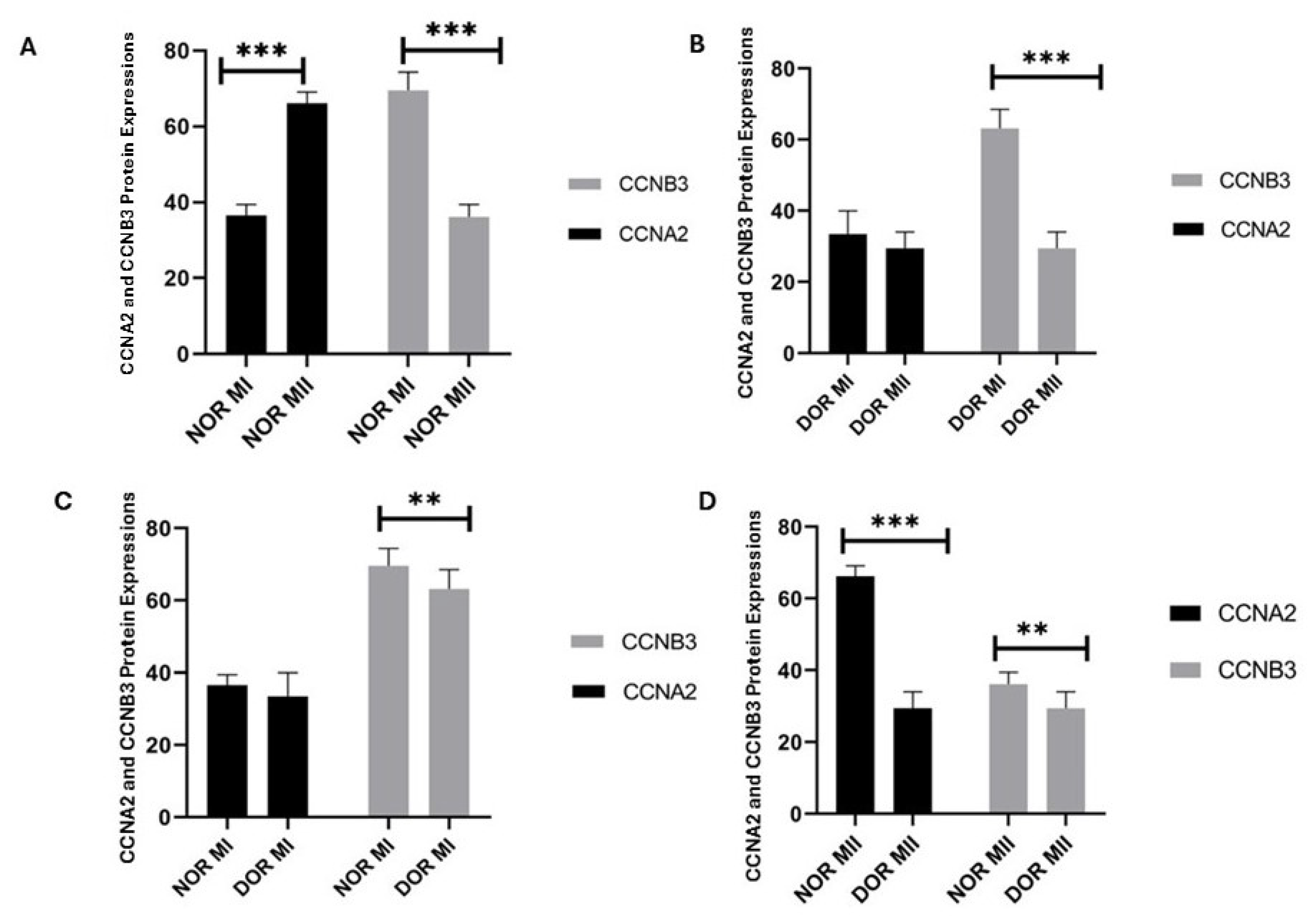 Kılıç, N.Ö.; Öner, Ç.; Kütük, D.; Selam, B.; Olcay, İ.O.; Çolak, E. CCNA2 and CCNB3 as Early Potential Molecular Candidates of Oocyte Maturation in Cumulus-Oophorous Complex Cells from Follicular Fluid. Diagnostics 2025, 15, 2658. https://doi.org/10.3390/diagnostics15202658