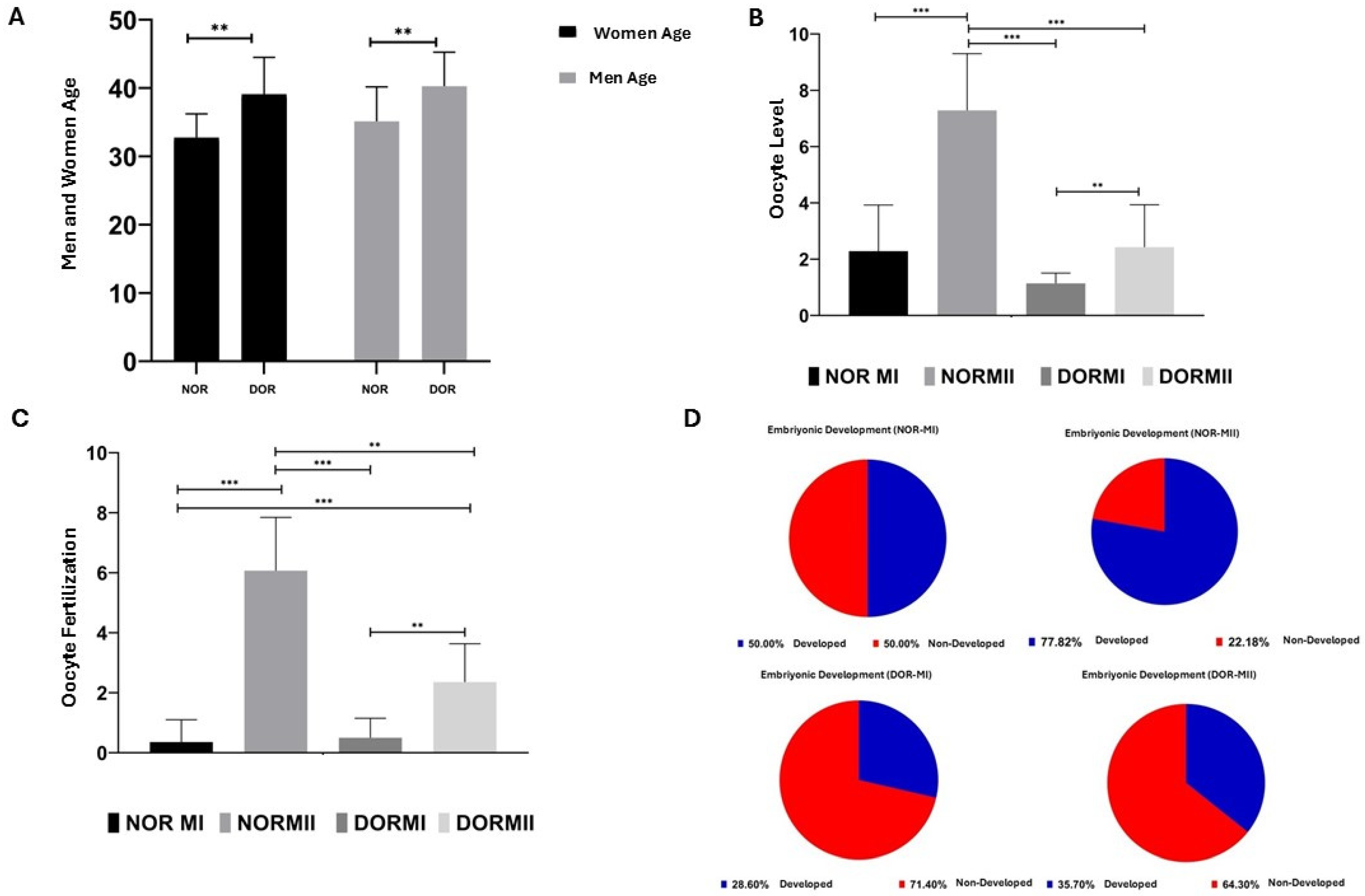2.6. Metadata Analysis: Female and Male Age, Oocyte Count, Oocyte Fertilization, and Embryo Development