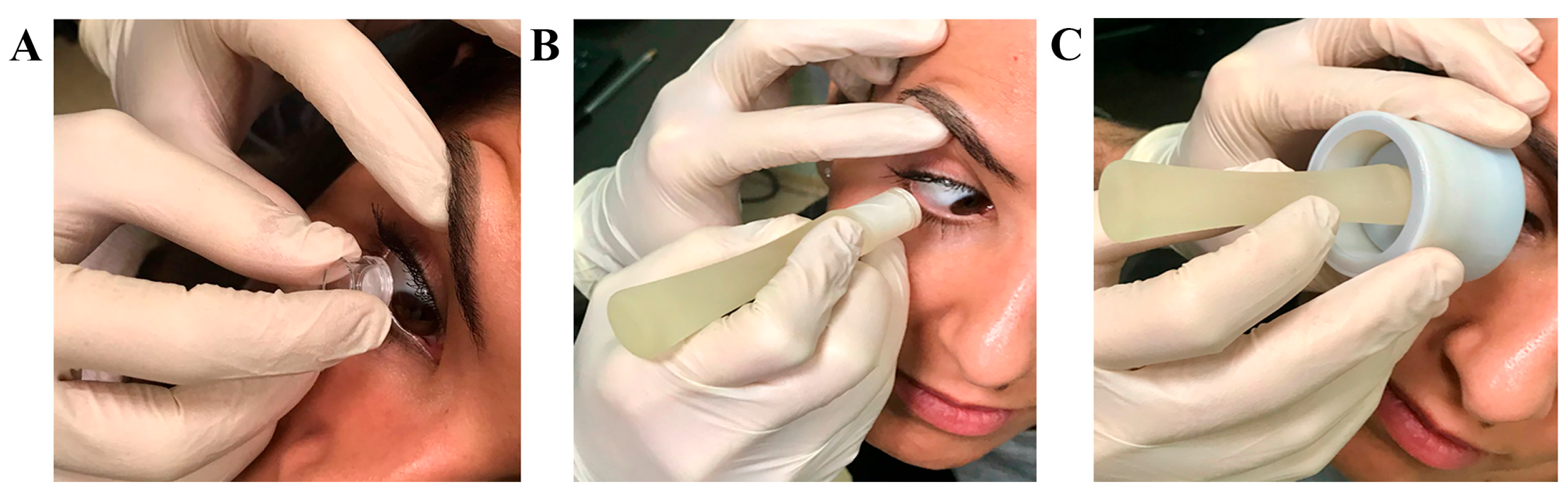 - López-Miguel, A.; Gutiérrez-Gutiérrez, S.; García-Vázquez, C.; Enríquez-de-Salamanca, A. RNA Collection from Human Conjunctival Epithelial Cells Obtained with a New Device for Impression Cytology. Cornea 2017, 36, 59–63. [Google Scholar] [CrossRef] [PubMed]