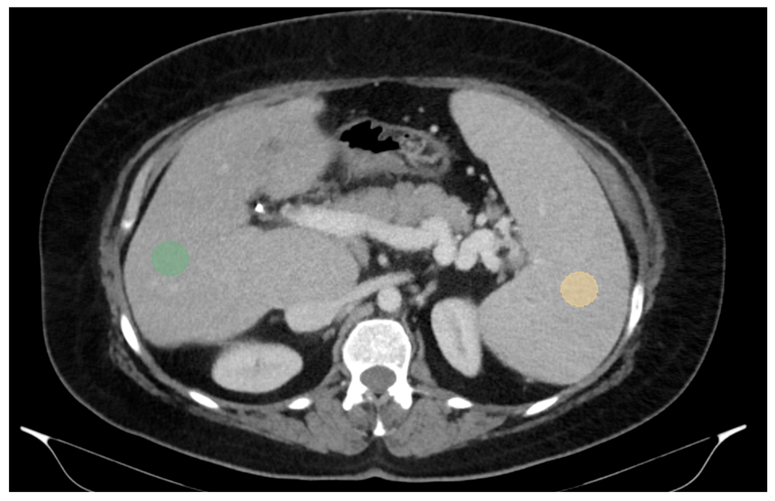 - Yin, Y.; Yakar, D.; Dierckx, R.A.J.O.; Mouridsen, K.B.; Kwee, T.C.; de Haas, R.J. Combining Hepatic and Splenic CT Radiomic Features Improves Radiomic Analysis Performance for Liver Fibrosis Staging. Diagnostics 2022, 12, 550. [Google Scholar] [CrossRef] [PubMed]