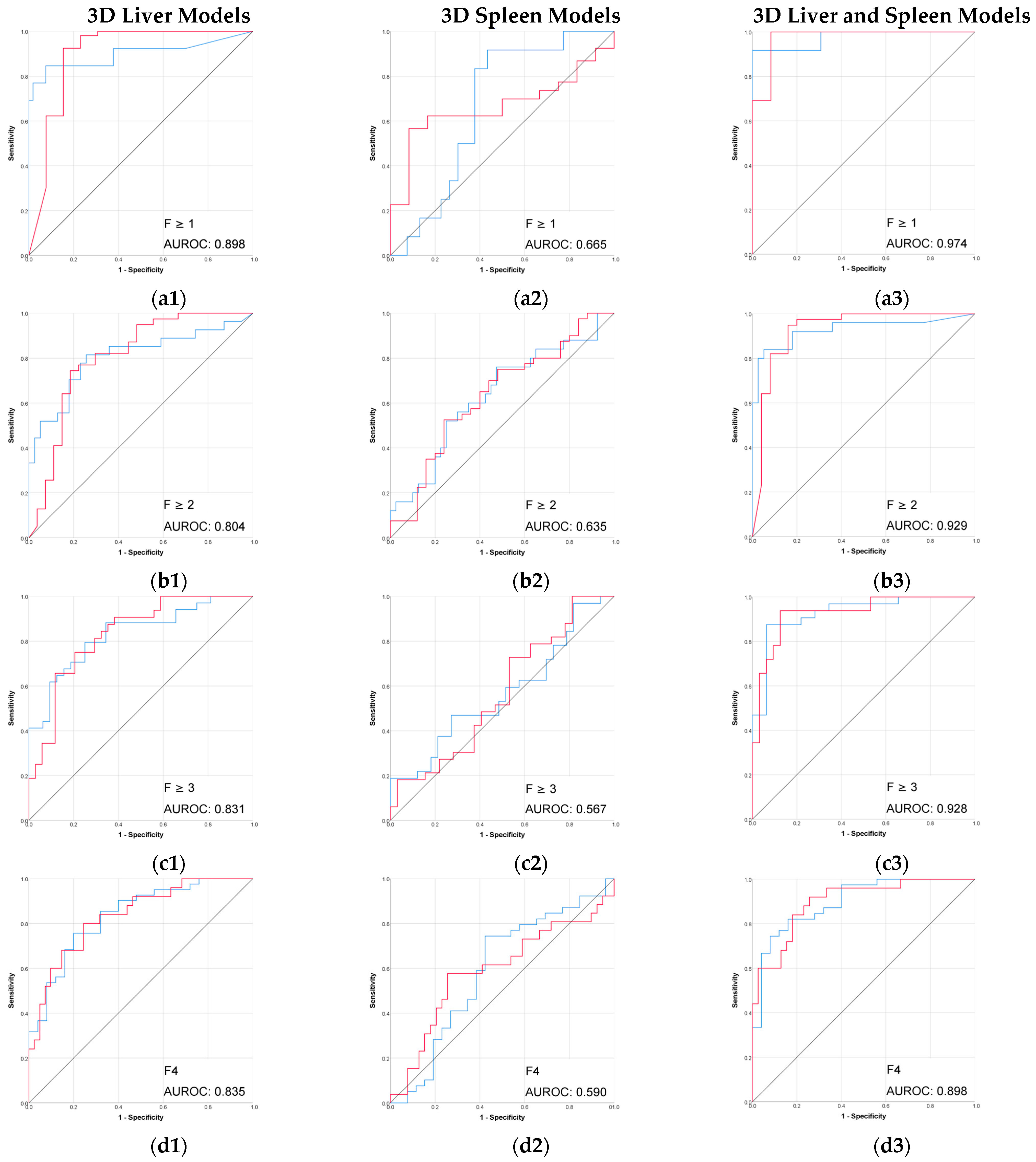 3.1.1. Performance of CT-Based Radiomic Models in Prediction of Biopsy-Proven Liver Fibrosis