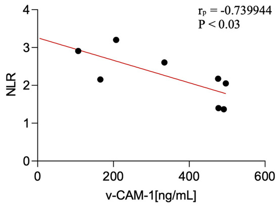 Correlation between serum v-CAM-1 levels and NLR among CBS patients.