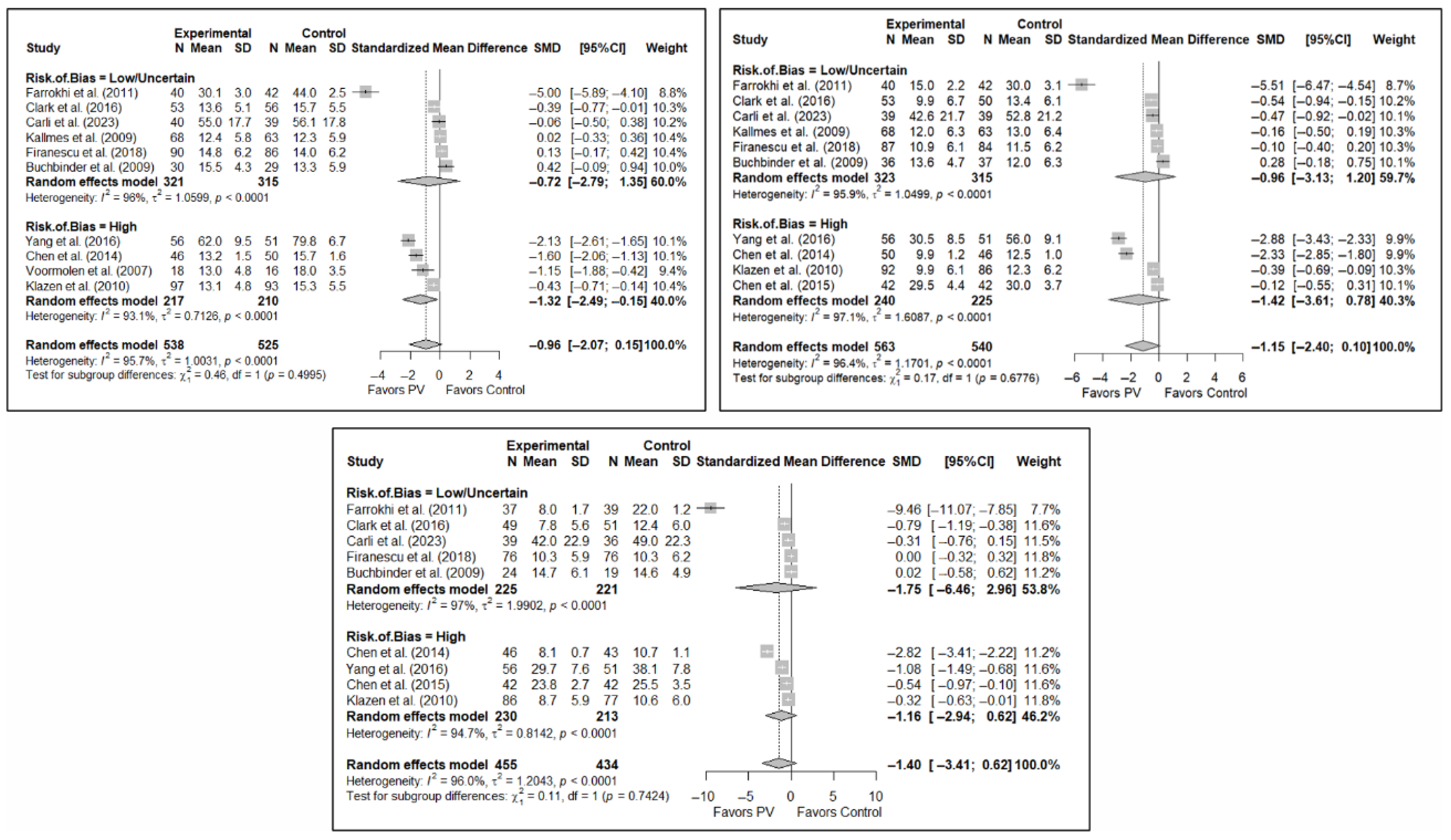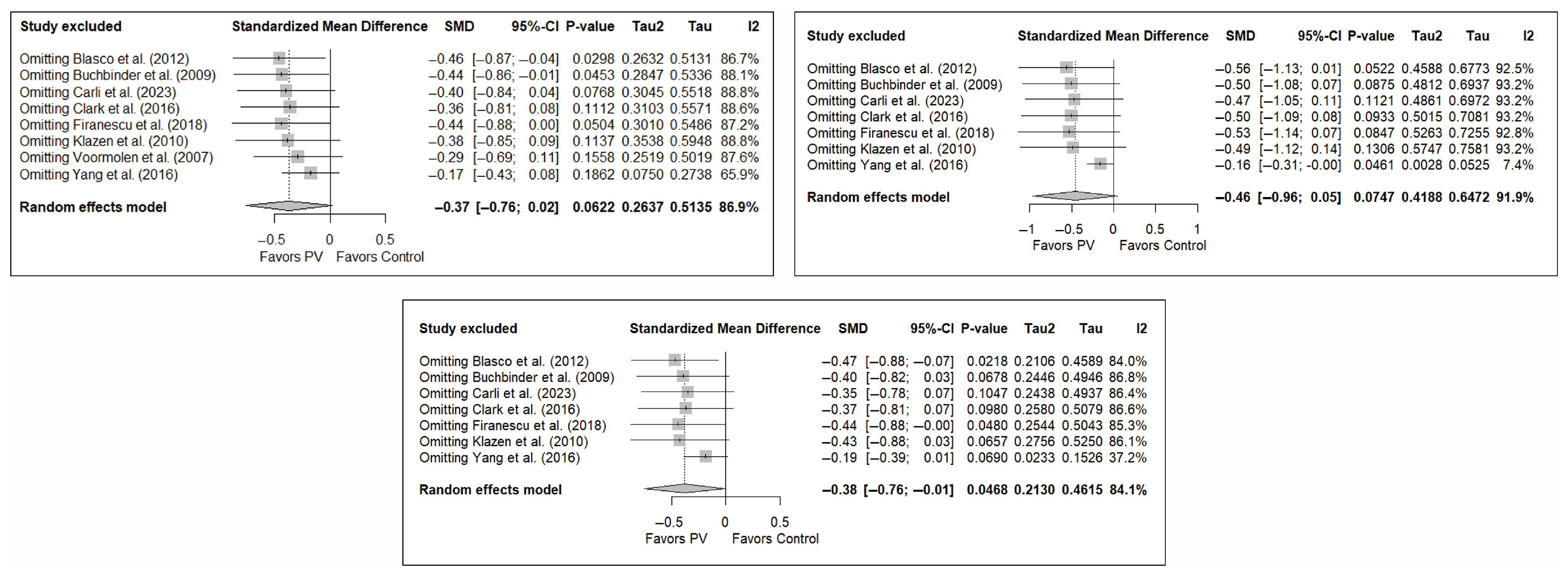 3.6.2. Analysis Based on the Assessment of Risk of Bias in Each Study