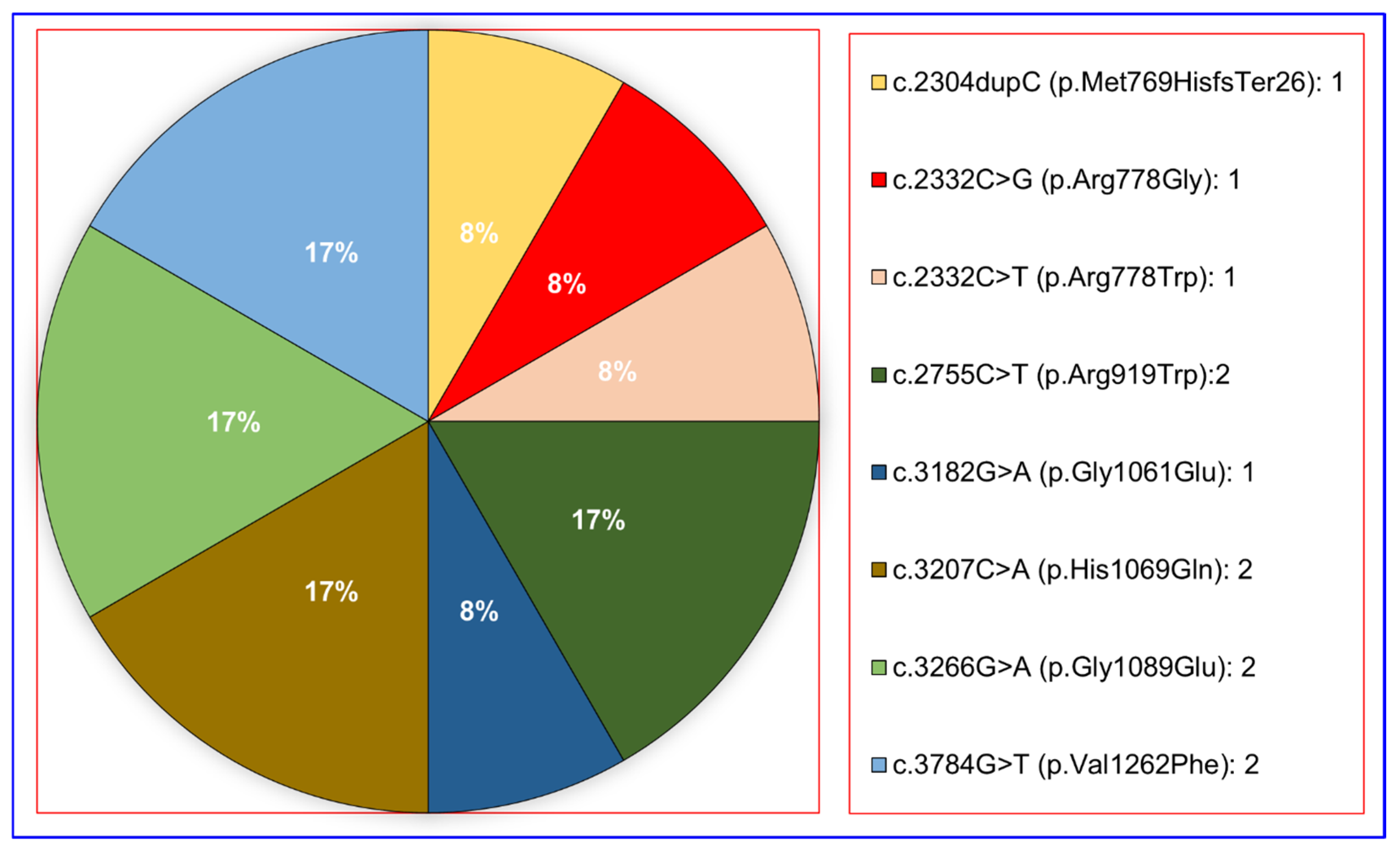 | H2 | c.2332C > T | p.Arg778Trp | 19 | 0.007125 | Loss of Function | Disease Mutation | [31,32,33,34,35,36,37,38] | |