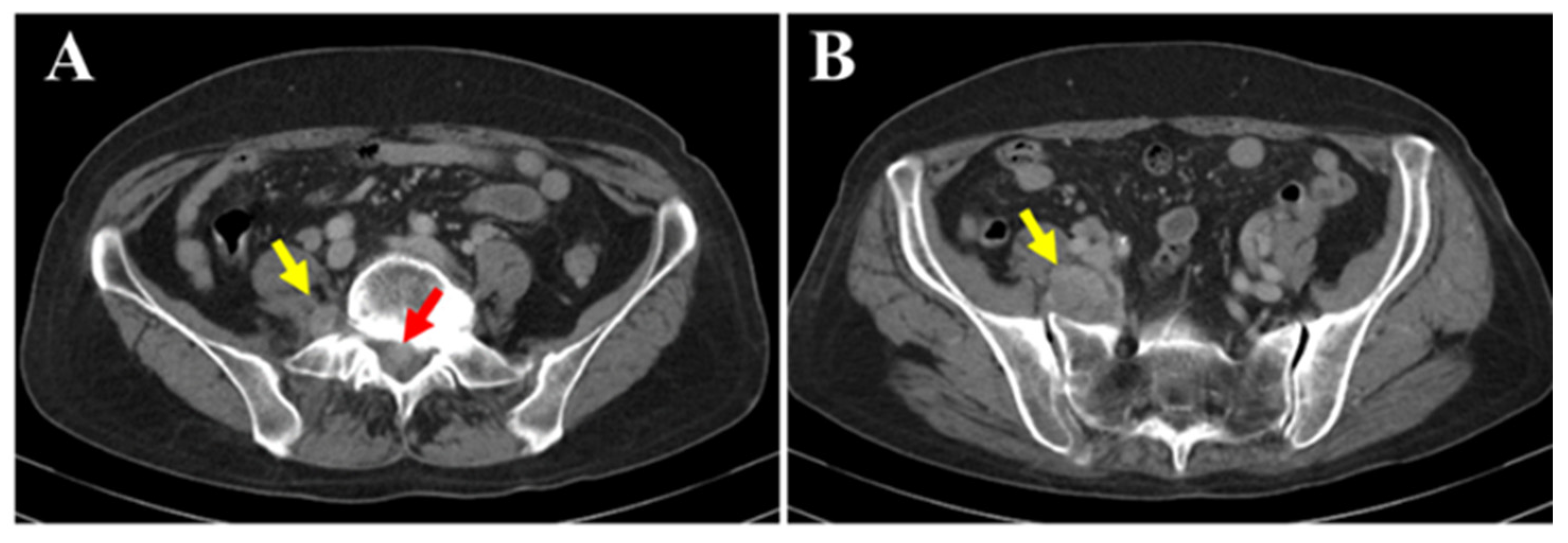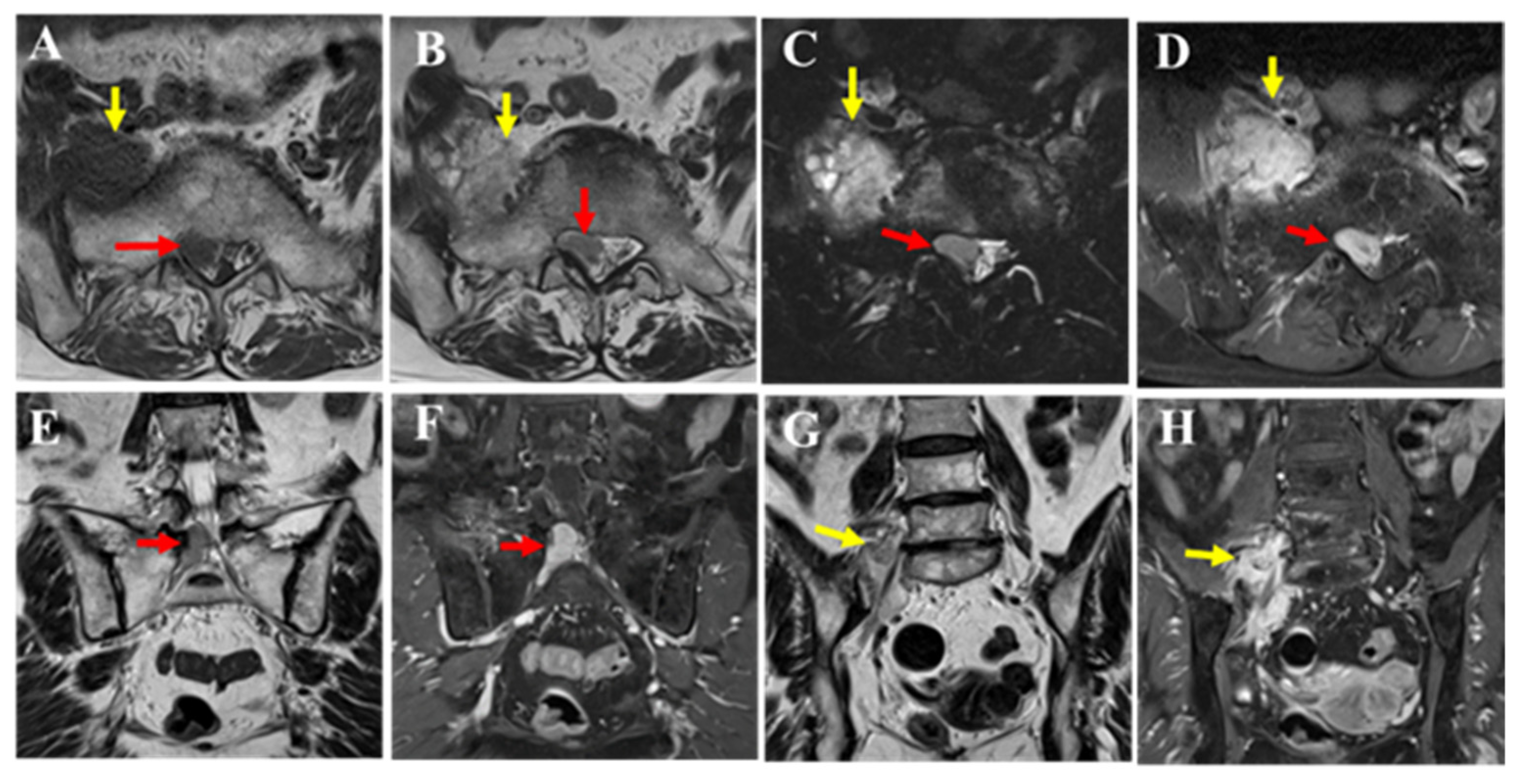 - Haddad, G.; Moussalem, C.; Saade, M.C.; El Hayek, M.; Massaad, E.; Gibbs, W.N.; Shin, J. Imaging of adult malignant soft tissue tumors of the spinal canal: A guide for spine surgeons. World Neurosurg. 2024, 187, 133–140. [Google Scholar] [CrossRef] [PubMed]