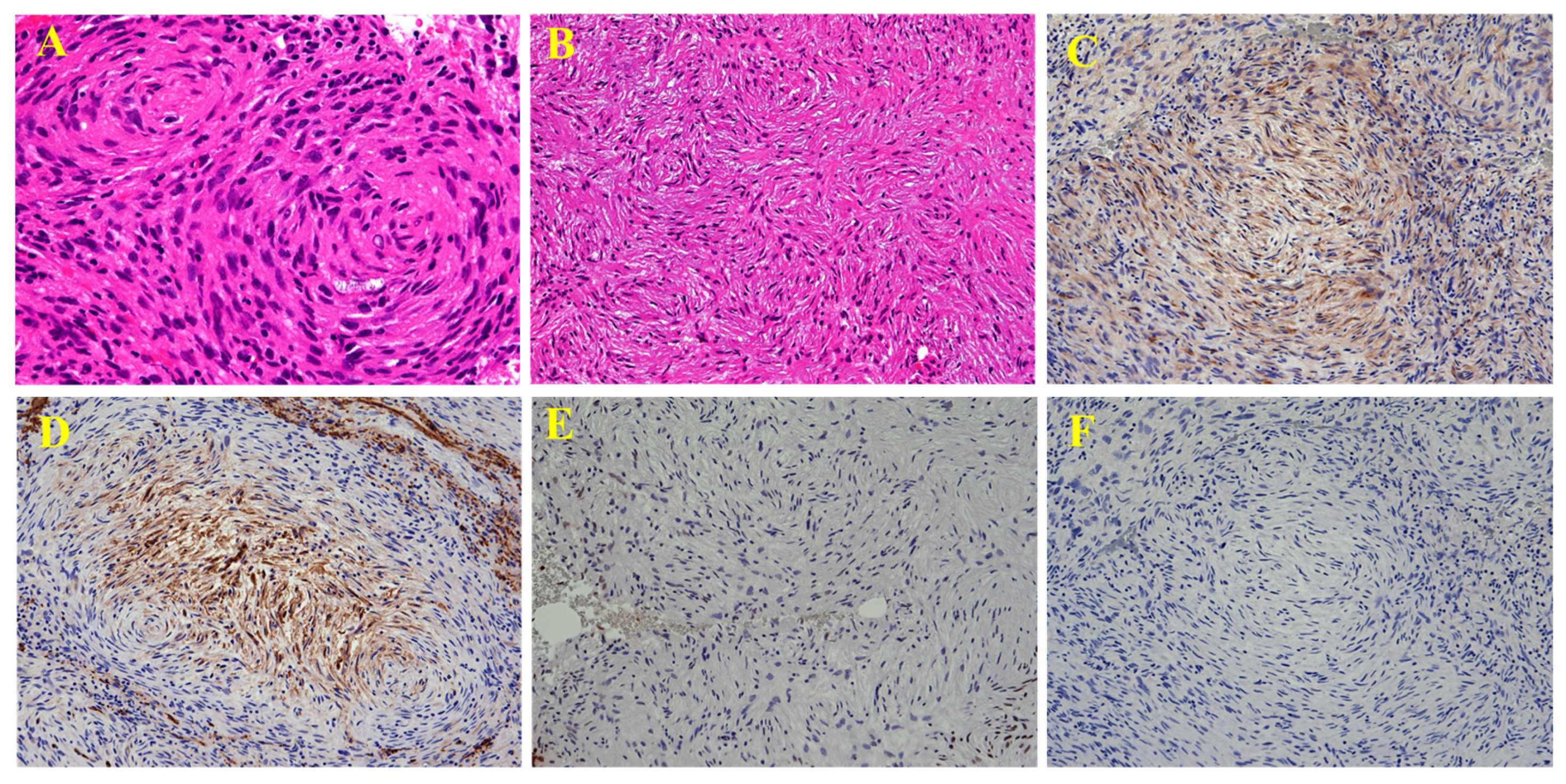 - Thway, K.; Fisher, C. Malignant peripheral nerve sheath tumor: Pathology and genetics. Ann. Diagn. Pathol. 2014, 18, 109–116. [Google Scholar] [CrossRef] [PubMed]