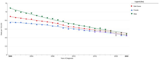 Incidence after the year 2000 in both sexes. National Cancer Institute (https://seer.cancer.gov) [20].