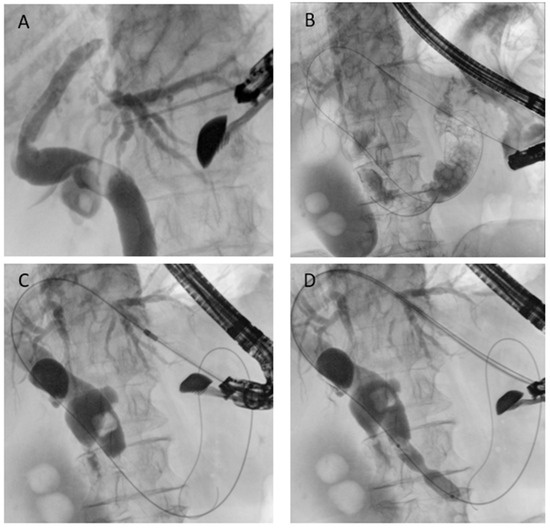 Its feasibility is highest in patients with Billroth II anatomy or hepaticojejunostomy, where the papilla or anastomosis is, at least, potentially reachable. The greatest technical challenge is the ability to pass the guidewire through the papilla or across a tight stricture. For this reason, long guidewires are generally recommended (better if partially or entirely hydrophilic) [38,39].