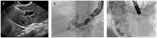 - Kühn, J.P.; Busemann, A.; Lerch, M.M.; Heidecke, C.D.; Hosten, N.; Puls, R. Percutaneous Biliary Drainage in Patients with Nondilated Intrahepatic Bile Ducts Compared with Patients with Dilated Intrahepatic Bile Ducts. Am. J. Roentgenol. 2010, 195, 851–857. [Google Scholar] [CrossRef] [PubMed]