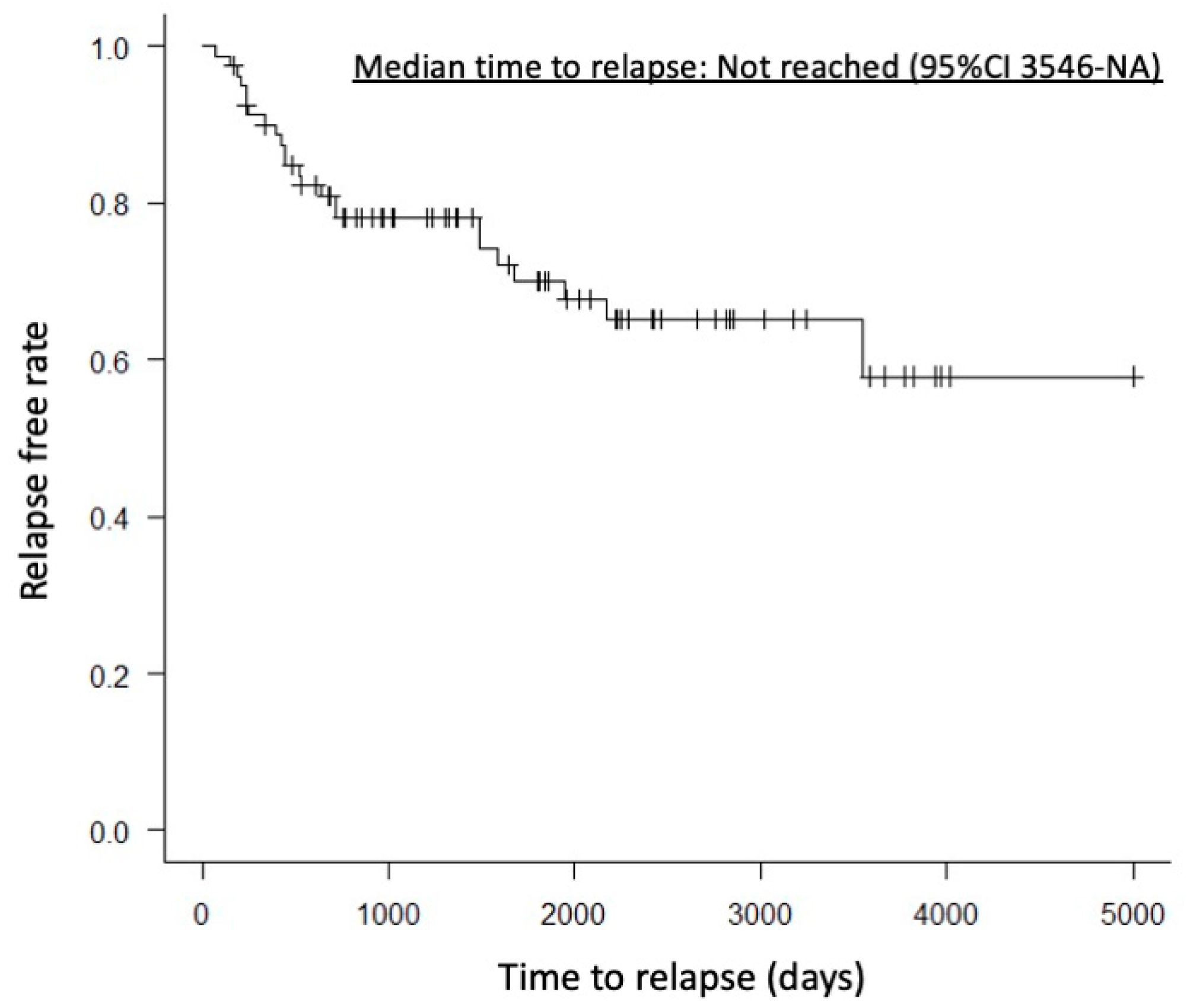 | Relapse within 1 year from starting treatment, n (%) | 10 (12) | 8 (14) | 2 (9) | 0.71 |