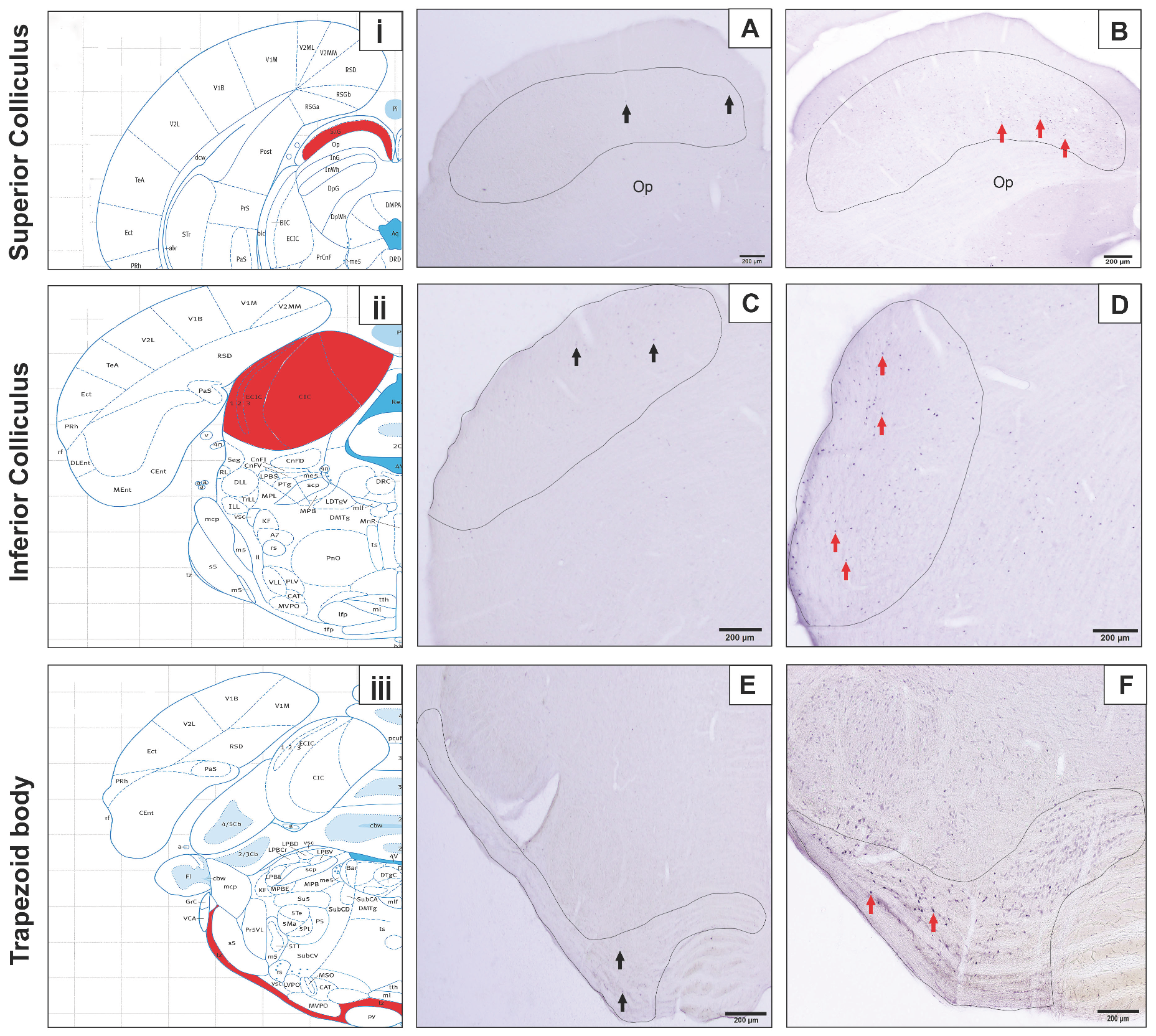 | Medial Nucleus of the Trapezoid Body | 43.16 ± 37.43 (2 to 93) | 772.16 ± 373.05 (255 to 1167) | <0.001 |