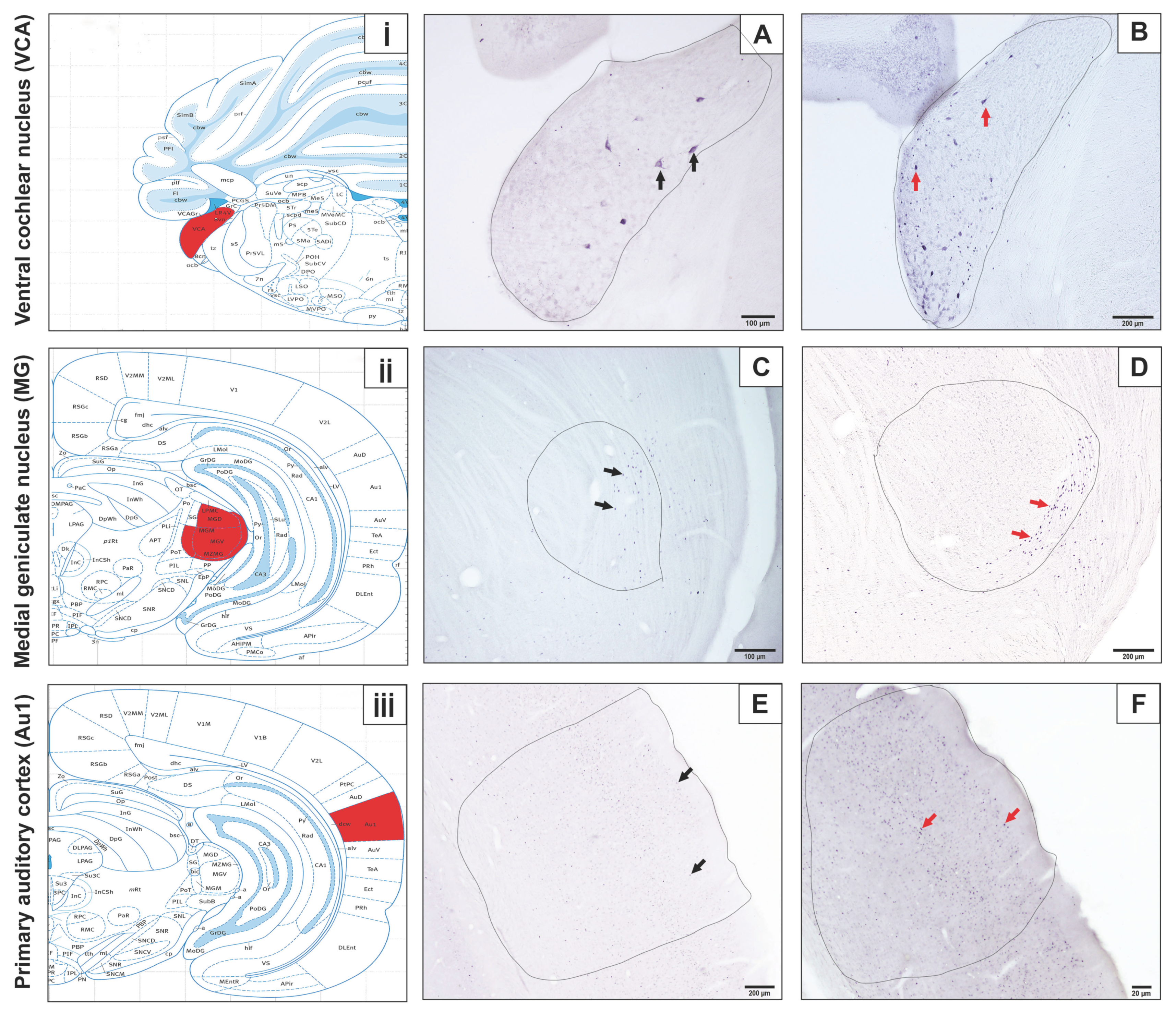 - Frohlich, F.; Ernst, A.; Strubing, I.; Basta, D.; Groschel, M. Apoptotic mechanisms after repeated noise trauma in the mouse medial geniculate body and primary auditory cortex. Exp. Brain Res. 2017, 235, 3673–3682. [Google Scholar] [CrossRef]