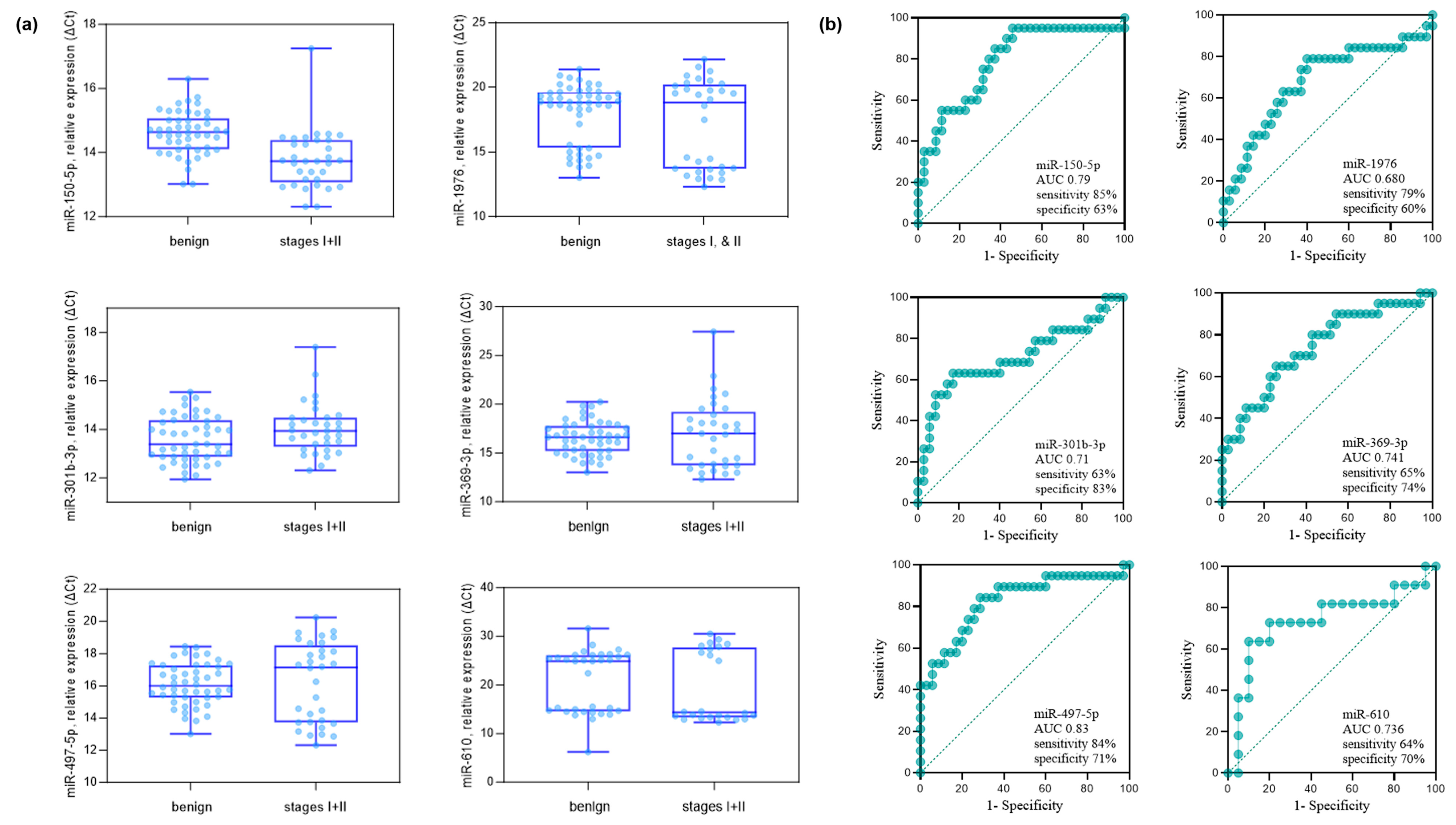 | qPCR | Stages I, II vs. Benign | qPCR | Stages I, II vs. Benign | ||
